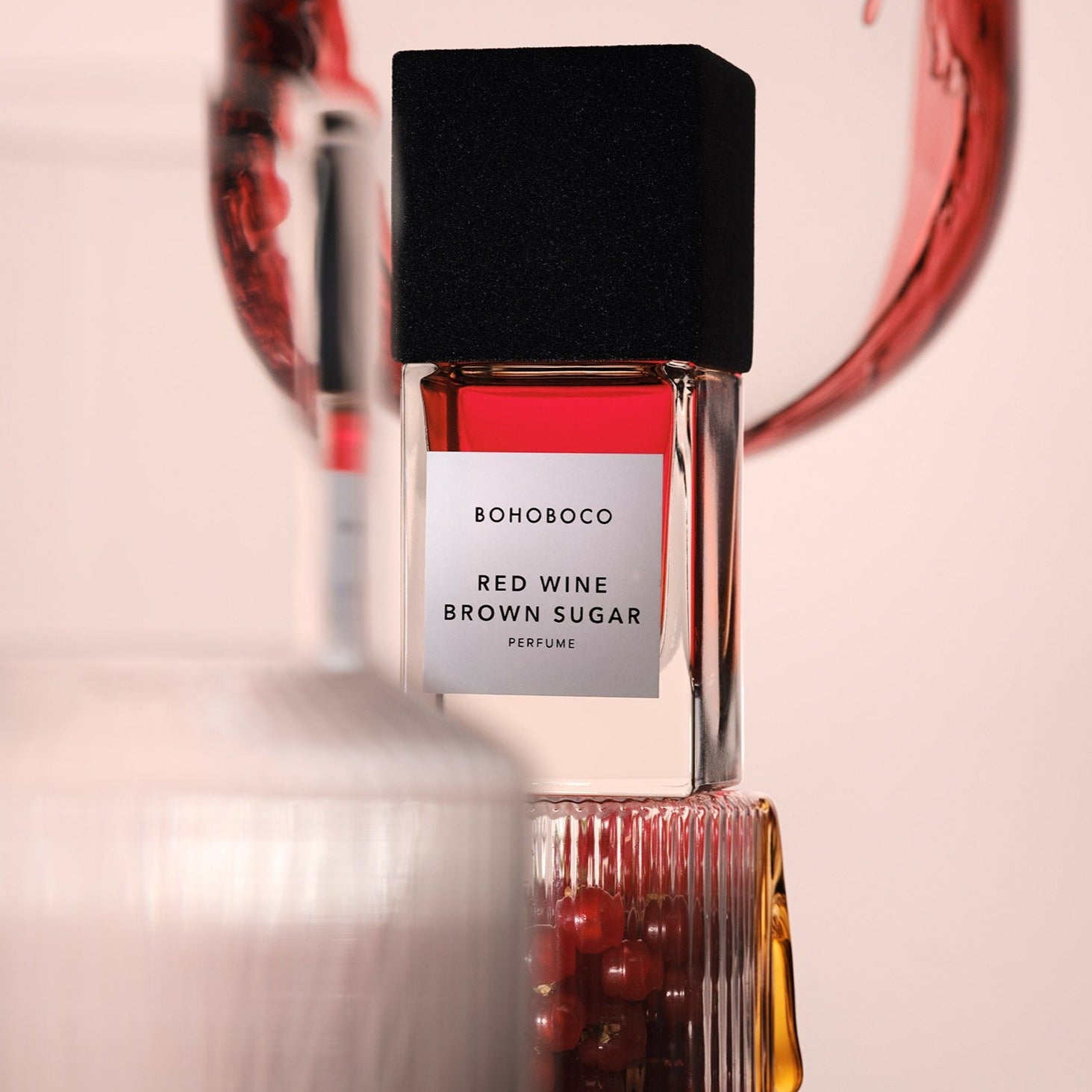 Bohoboco Red Wine Brown Sugar Perfume smells like a luxurious blend of dried fruits, red berries, and brown sugar with an extravagant hint of spicy red wine.