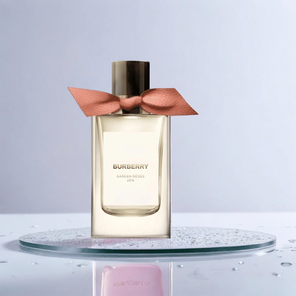 Burberry Bespoke Collection Garden Roses 20% EDP smells like a luxurious blend of fresh garden roses with a hint of rosebay willowherb, capturing the timeless elegance of a classic Bloomsbury garden.