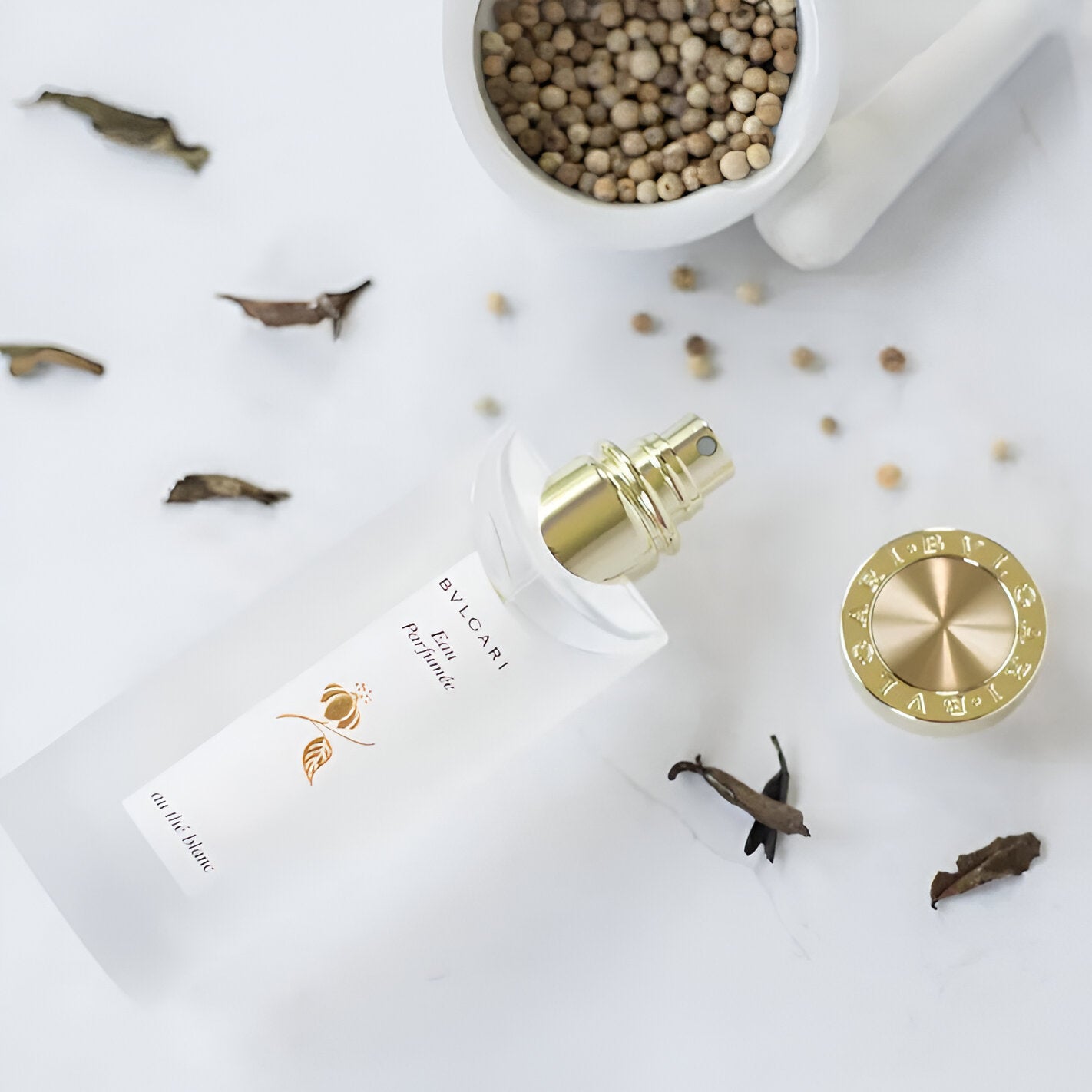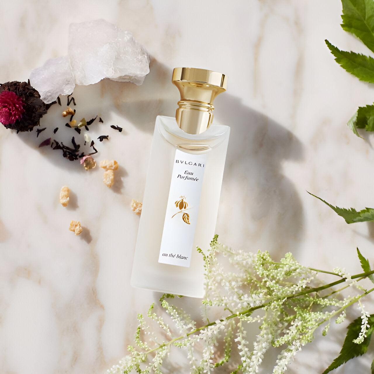 Immerse in the serene elegance of Bvlgari Eau Parfumee Au The Blanc, a unisex fragrance symbolizing tranquility and refinement.