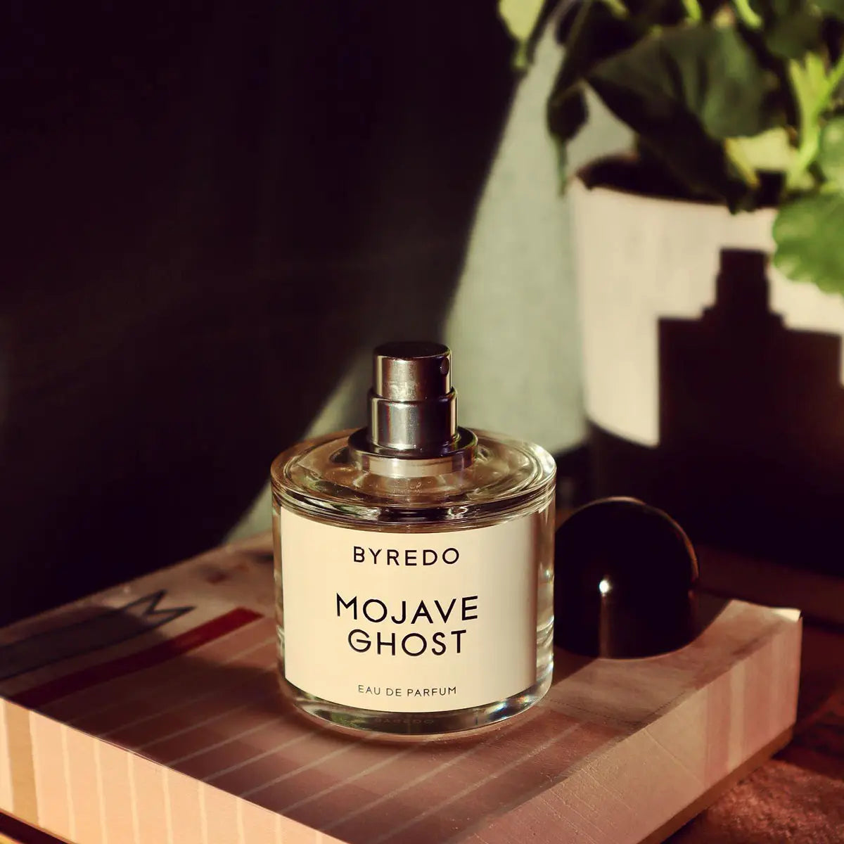 Byredo Mojave Ghost Body Cream offers a luxurious, woody aroma with hints of musky ambrette, sweet Jamaican nesberry, and delicate violet, perfect for daily pampering and evoking the spirit of the desert's enigmatic blooms.