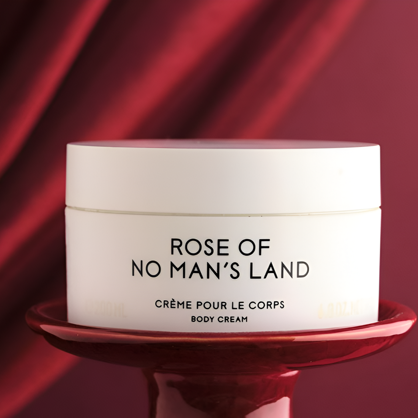 The Byredo Rose Of No Man's Land Body Cream offers a delicate Turkish rose scent, embodying elegance and compassion in a vegan formula that moisturizes and leaves a lingering fragrance.