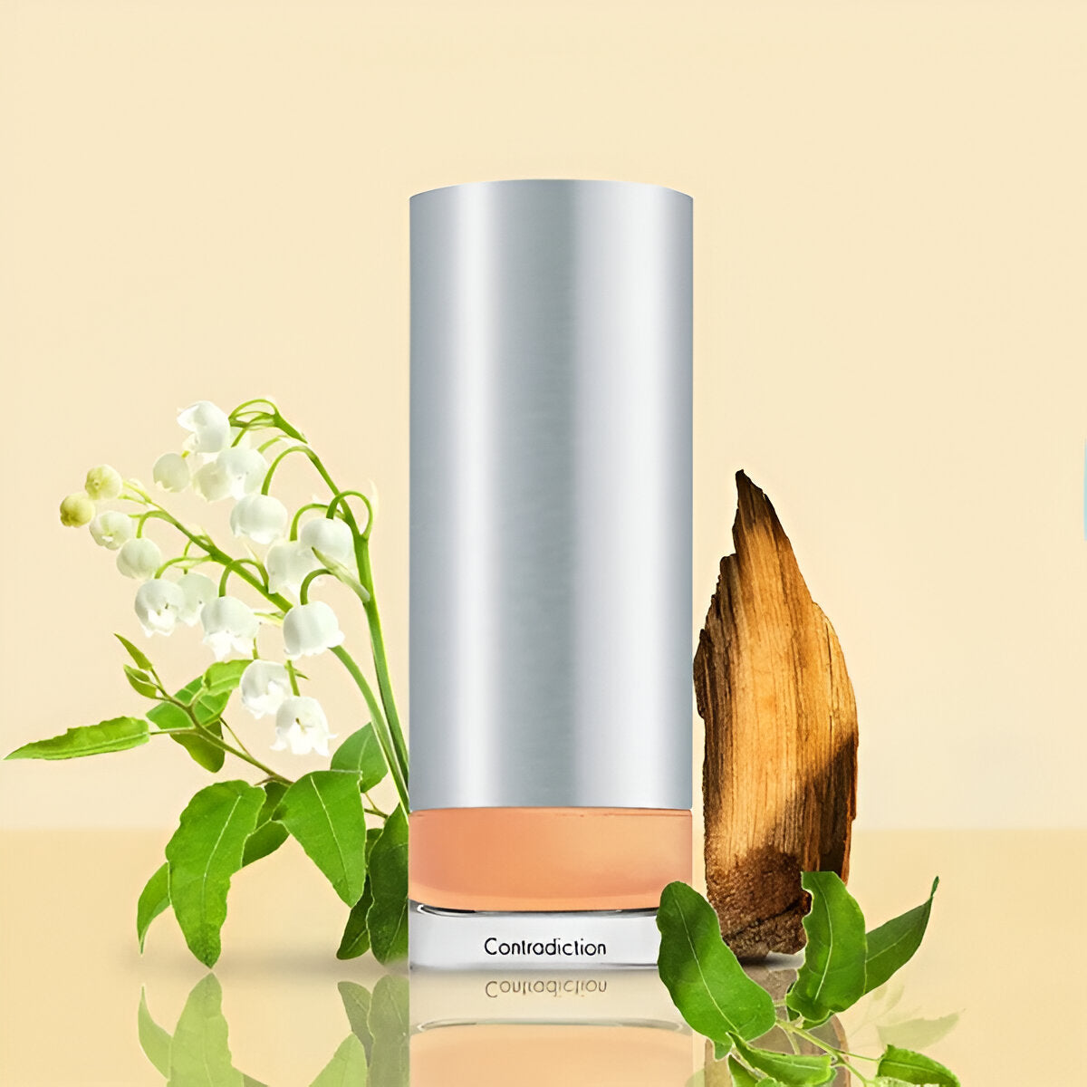 Calvin Klein Contradiction EDP smells like a beautiful mix of fresh flowers and warm woods, combining notes of lily, peony, and sandalwood for a confident and alluring scent.