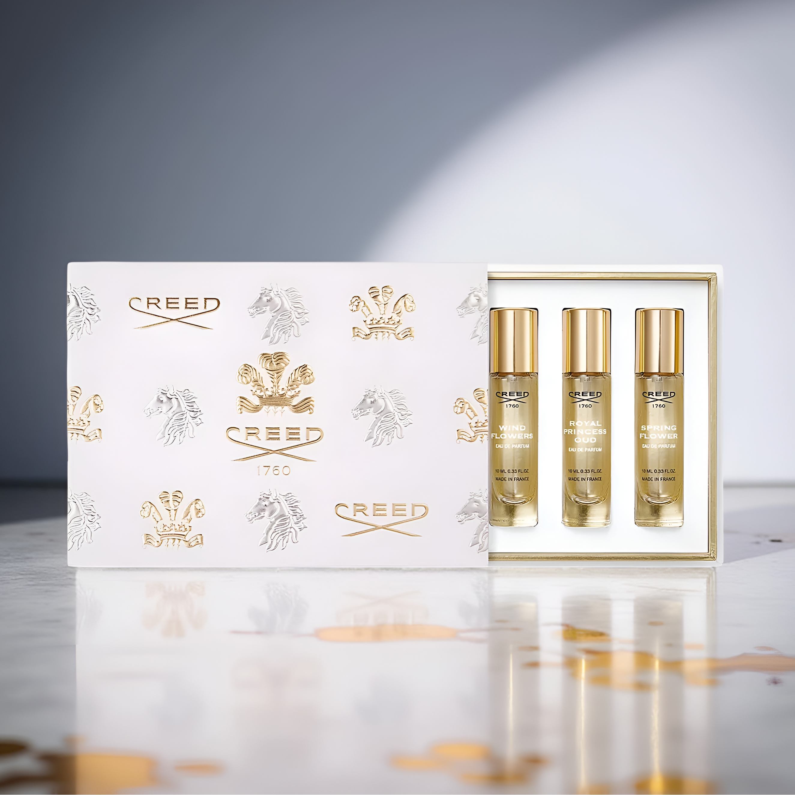 - What's inside: 10ml Creed Aventus EDP Travel Spray, 10ml Creed Carmina EDP Travel Spray, 10ml Creed Wind Flowers EDP Travel Spray