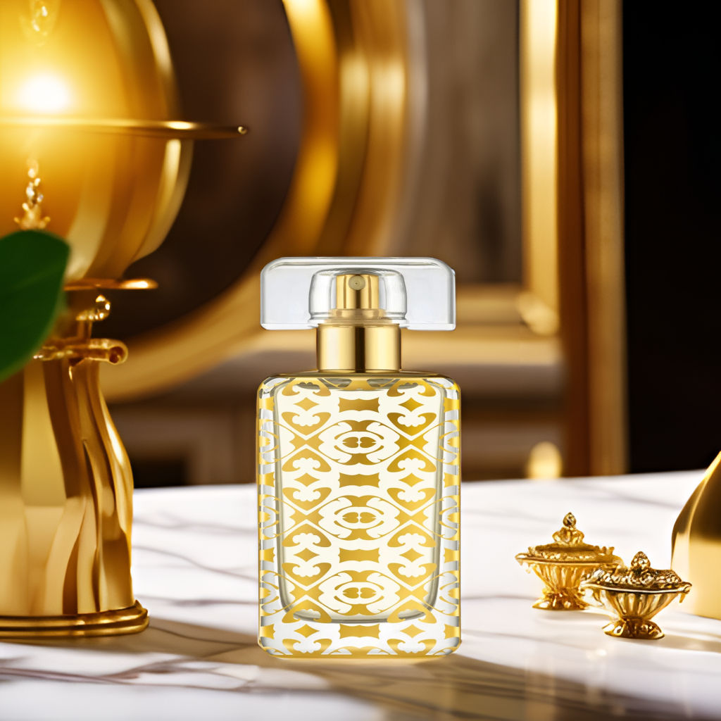 Estée Lauder Azuree D'Or smells of saffron, plum, and pink pepper, with jasmine, rose, and galbanum, finished with bold leather notes.