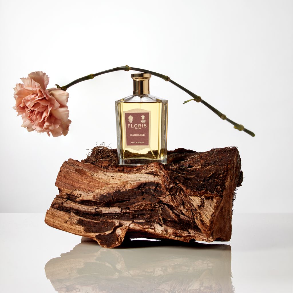 Floris Leather Oud EDP smells of rich leather and oud with warm sandalwood and complex spices, ideal for an opulent evening scent.