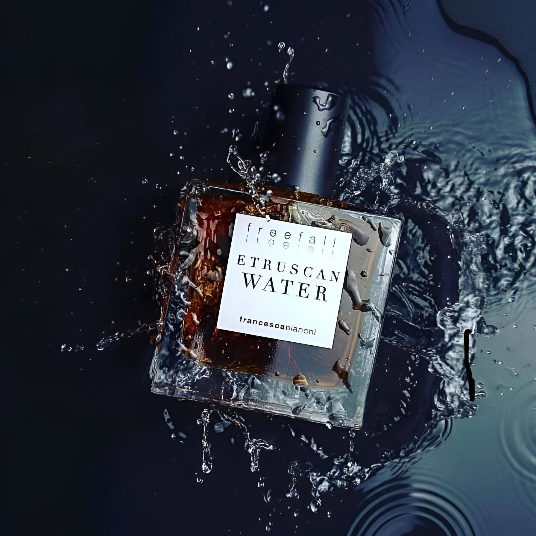 Francesca Bianchi Etruscan Water Extrait De Parfum smells like a captivating blend of citrusy bergamot and green notes, intertwined with chypre, spicy, and powdery accents, evoking the refreshing and seductive essence of sun-warmed skin and sea breeze in southern Tuscany.