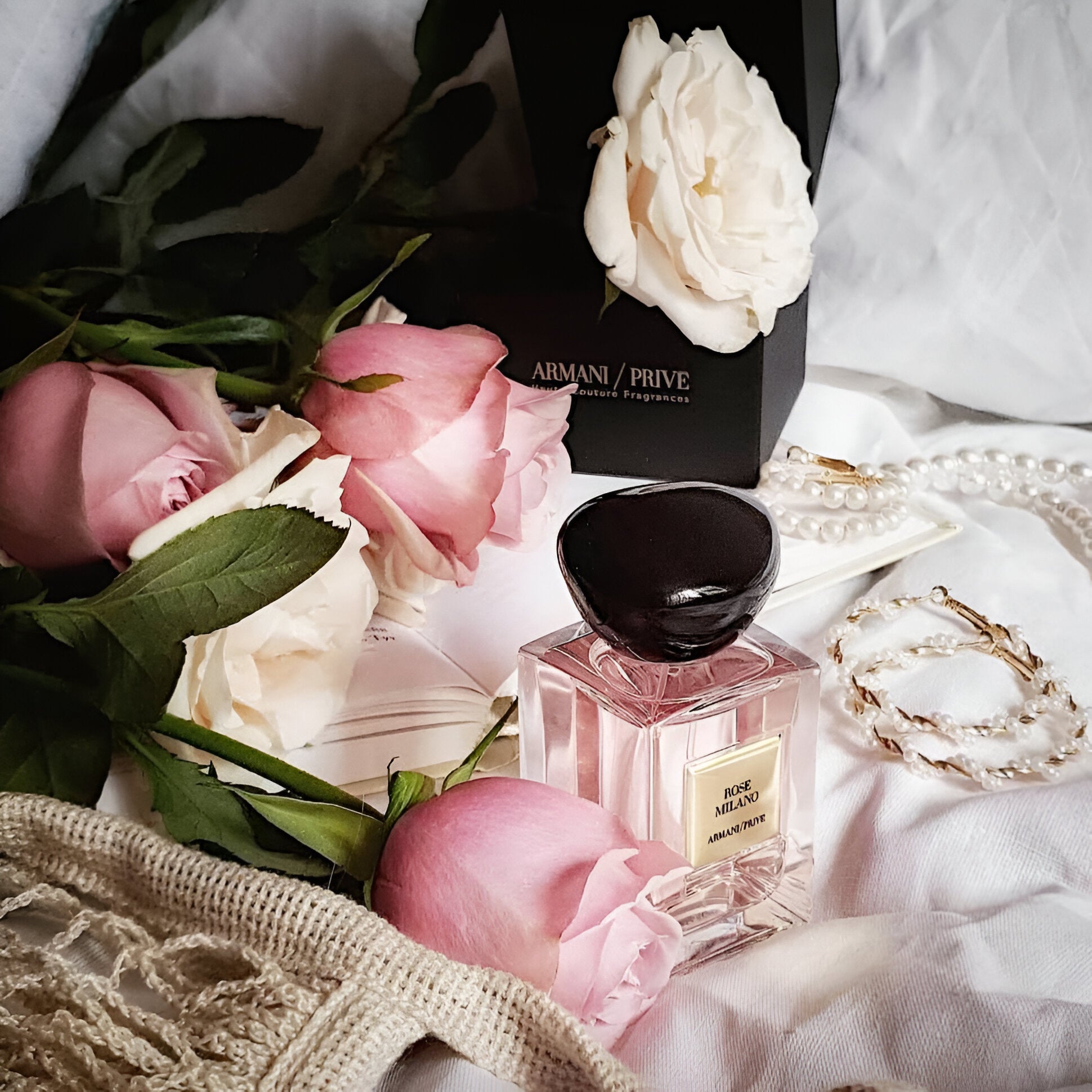 Giorgio Armani Prive Rose Milano EDT smells like a fresh, citrusy bouquet of Milanese roses blended with soft jasmine, capturing the chic spirit of Milan's fashion.
