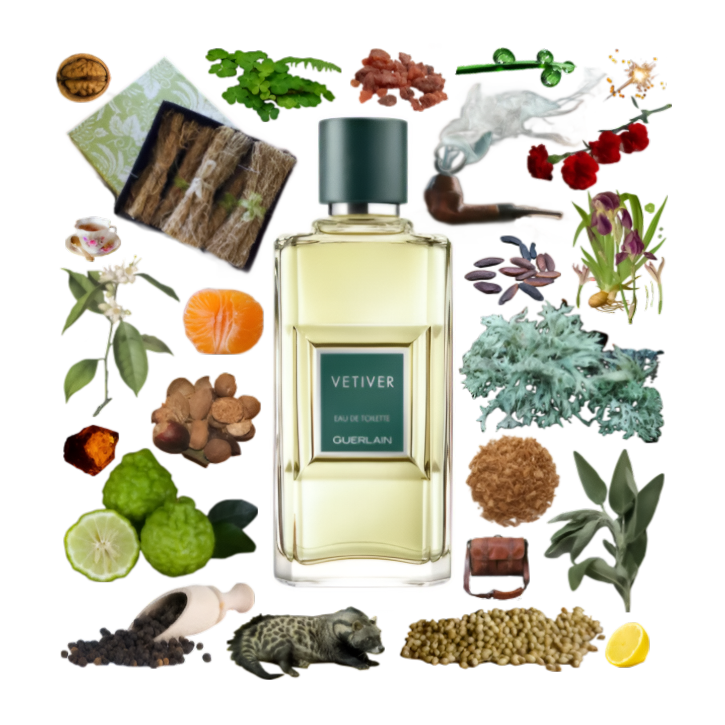 Guerlain Vetiver EDT smells like a blend of earthy vetiver roots with a woody aroma, complemented by fresh citrus and a hint of rosemary.