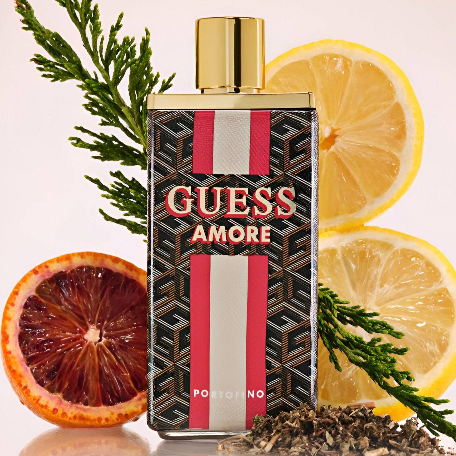 Guess Amore Portofino EDT smells like a sunny Mediterranean getaway, blending refreshing citrus and Italian cypress with a floral hint of geranium, capturing the essence of carefree adventures by the coast.