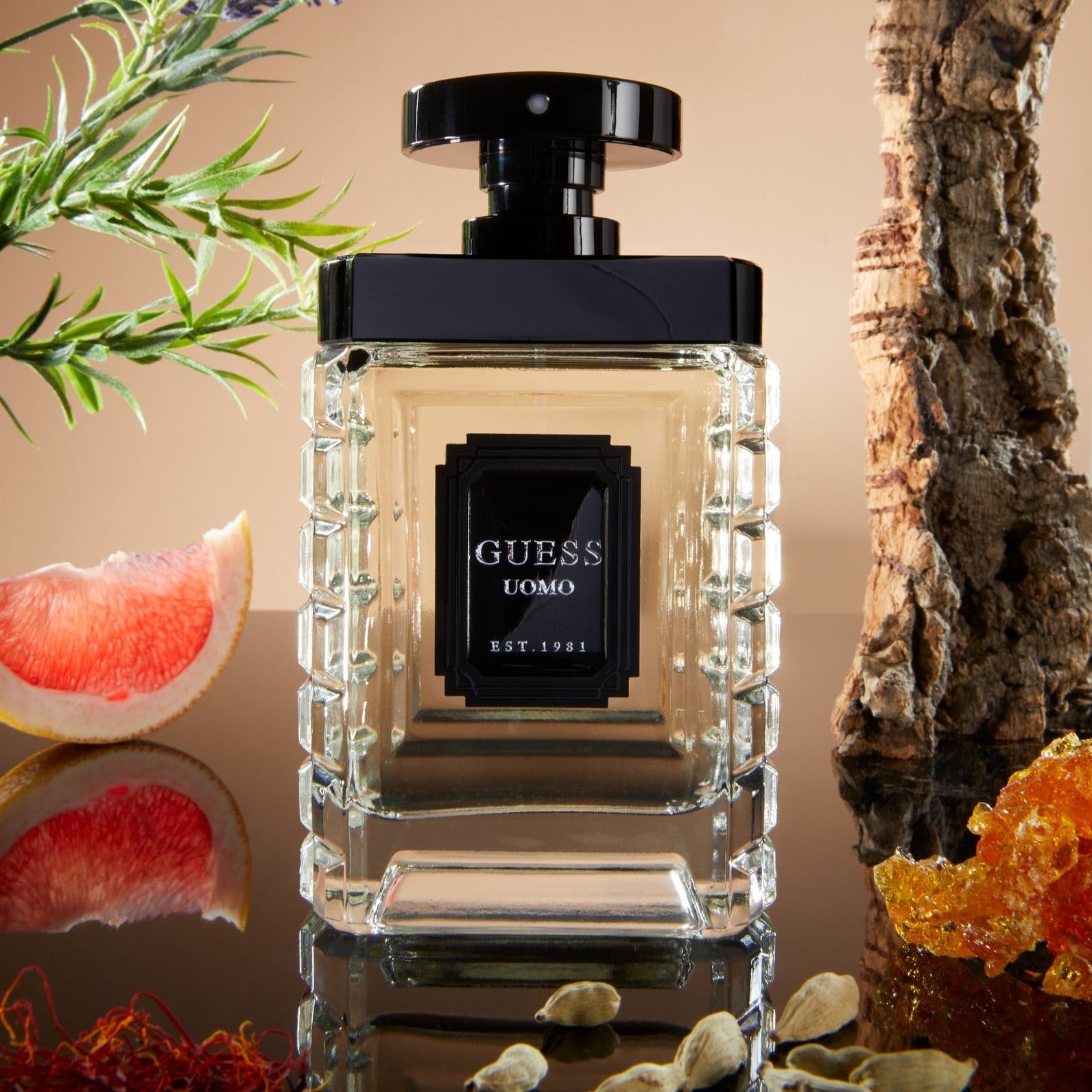 Indulge in the bold essence of masculinity with the Guess Uomo Essentials Collection Set.