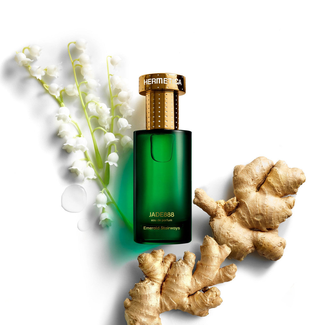 Hermetica Jade888 EDP smells of fresh, green florals with crisp Iris and spicy Ginger notes, evoking the vibrancy of the Amazon.