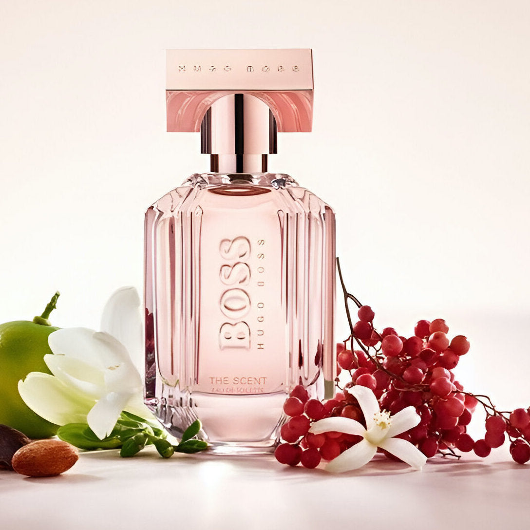 Hugo Boss The Scent EDP For Her combines green mandarin, pink pepper, orange blossom, and roasted cocoa for a luxurious floral-fruity aroma with warm gourmand undertones.
