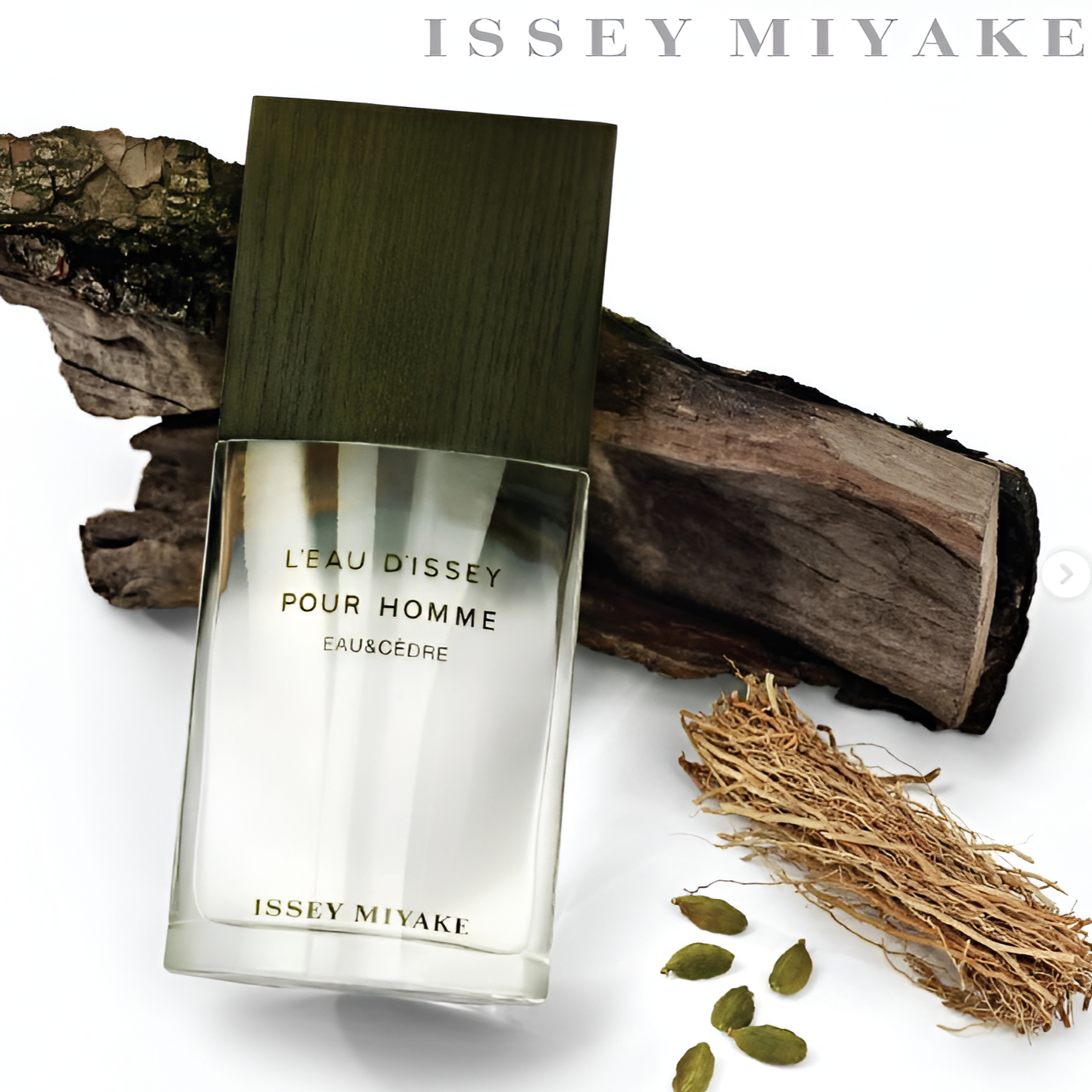 An olfactory journey that captures the raw encounter between elemental waters and the majestic cedar tree. This scent, a nod to the original L'Eau d'Issey, is a sophisticated blend crafted for the modern man who appreciates the power of simplicity and the intensity of nature.