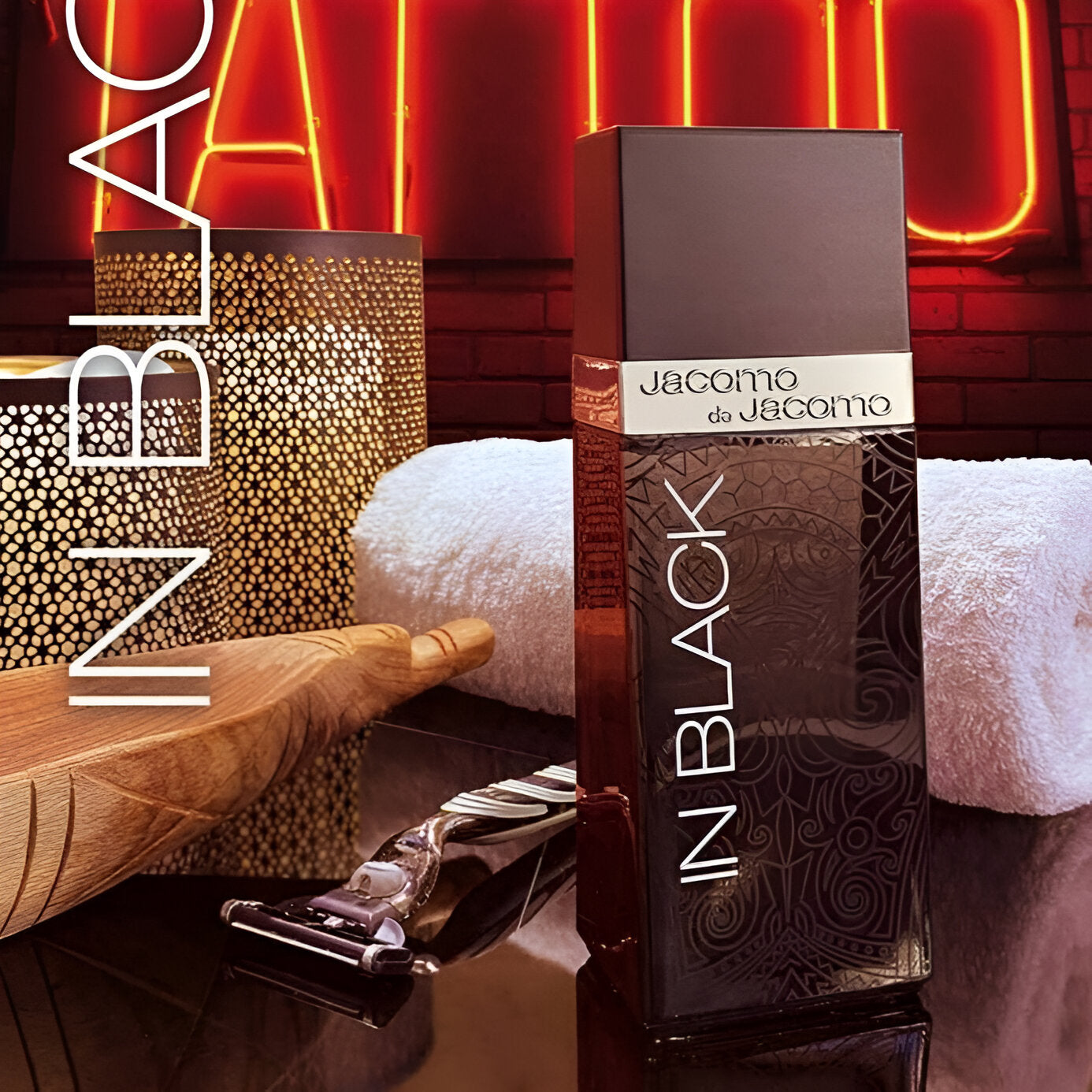 Immerse yourself in the aromatic essence of Jacomo De Jacomo In Black, a fragrance that encapsulates the mystery and allure of the night.