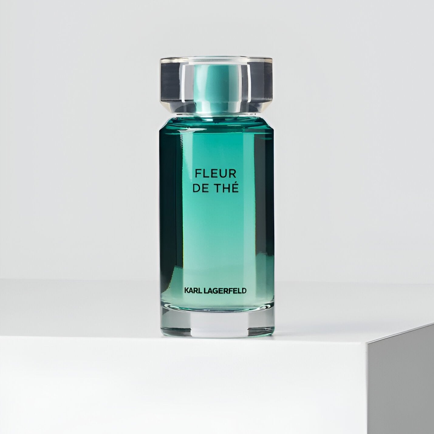 Karl Lagerfeld Fleur De The EDP smells like a refreshing blend of green tea, delicate flowers, and a hint of fruity sweetness, creating a light and uplifting fragrance.