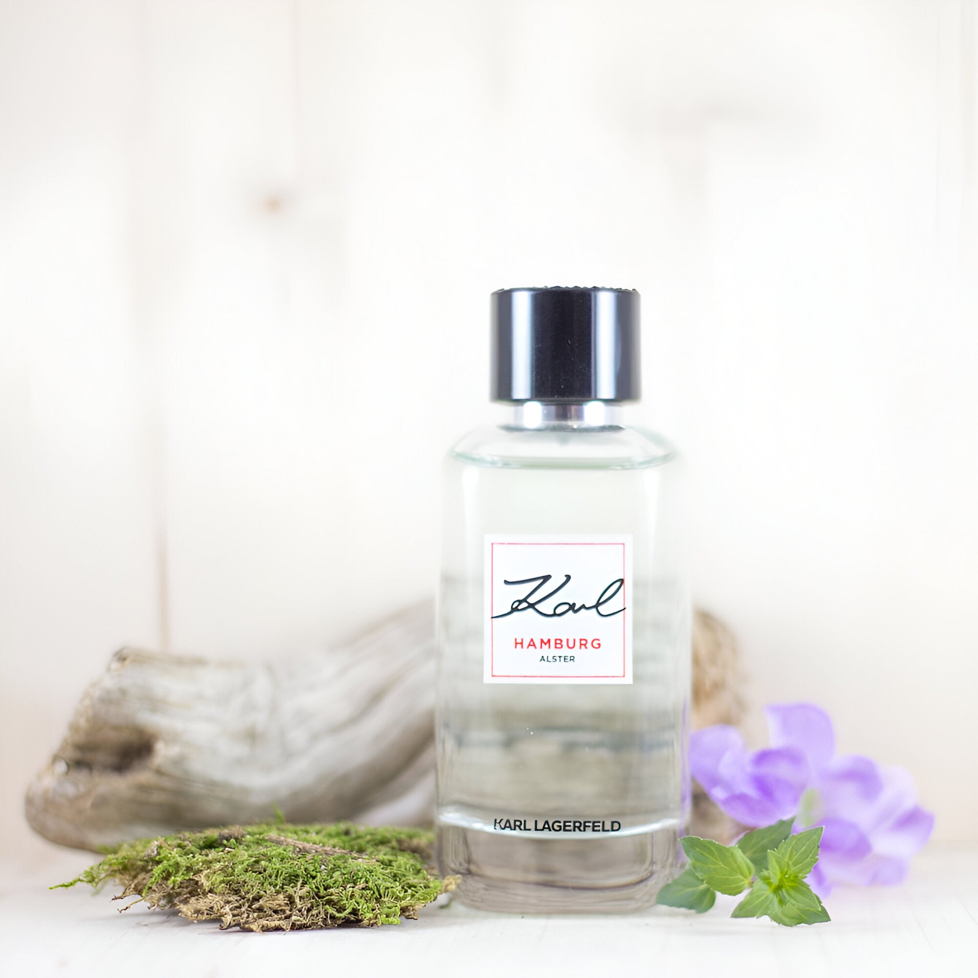 The Karl Lagerfeld Karl Hamburg Alster EDT smells like a fresh, woody breeze, capturing the essence of the Alster river with a pure and clean scent.