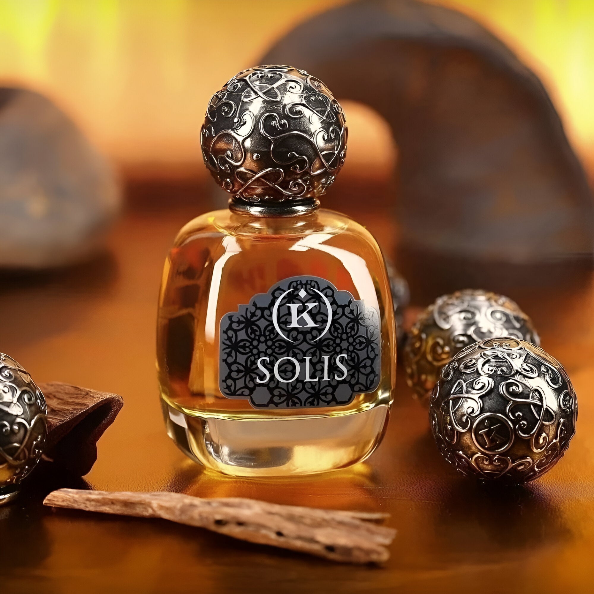 Kemi Blending Magic Solis EDP offers a unisex, mystical scent that combines the earthiness of oud and cedar with a heart of warm oriental caramel, evoking the spirit of ancient alchemy for a truly enchanting olfactory experience.
