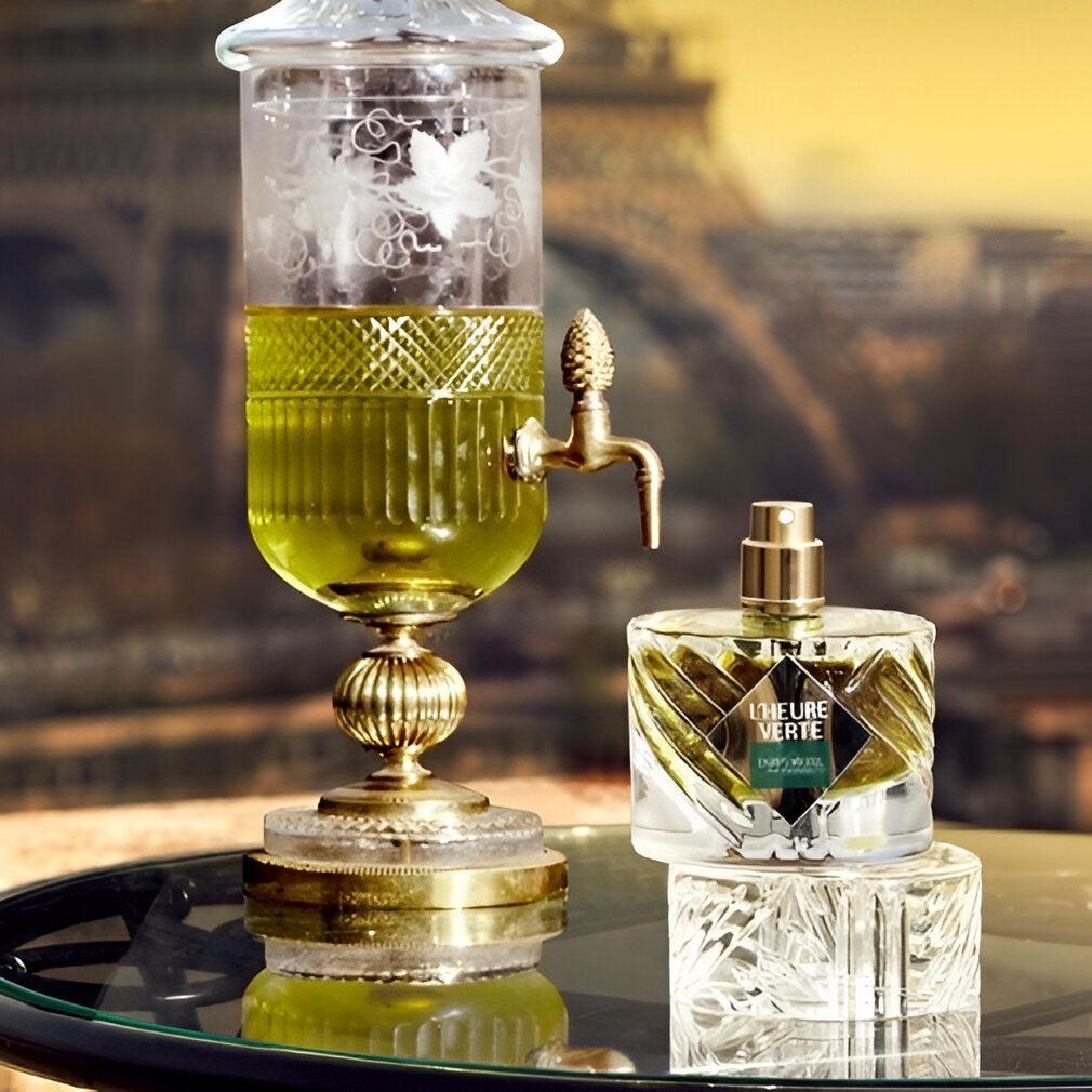 Embark on an olfactory journey with Kilian L'Heure Verte EDP, inspired by the enigmatic Parisian spirit.
