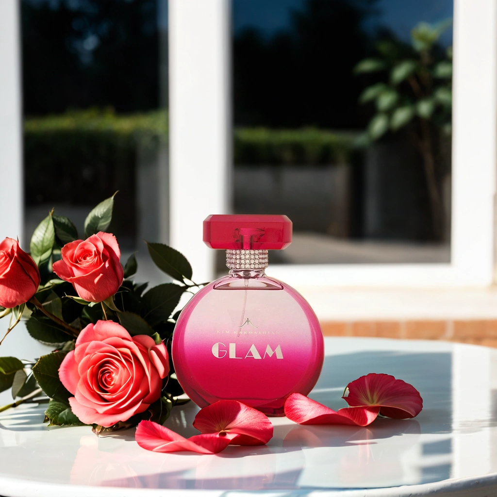 Kim Kardashian Glam EDP smells like a sophisticated blend of floral and fruity notes, perfect for adding a touch of elegance and glamour to both your daytime and evening wear.