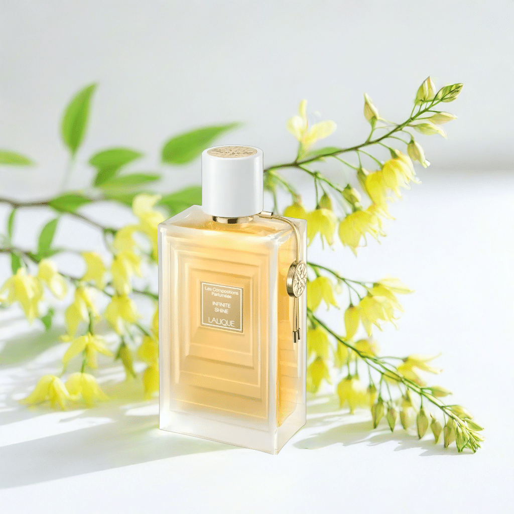 Lalique Les Compositions Parfumées Infinite Sunshine EDP exudes the luxurious warmth of morning sun rays, blending the calmness of lavender with a sophisticated and free-spirited essence.