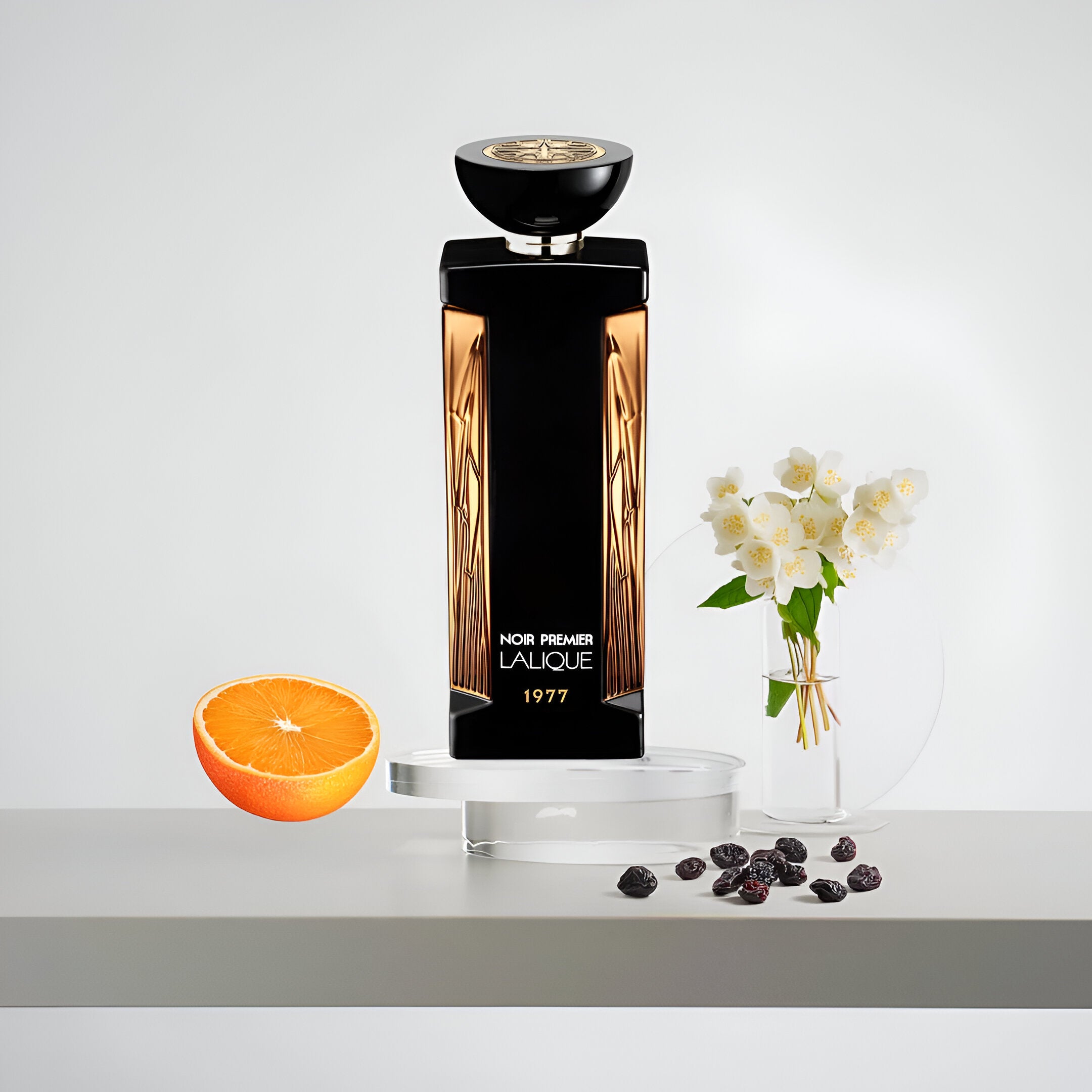 Lalique Noir Premier Fruits Du Mouvement EDP smells like a luxurious blend of sweet mandarin orange, rich tobacco, and warm coffee, creating a sophisticated and enchanting fragrance perfect for both men and women.