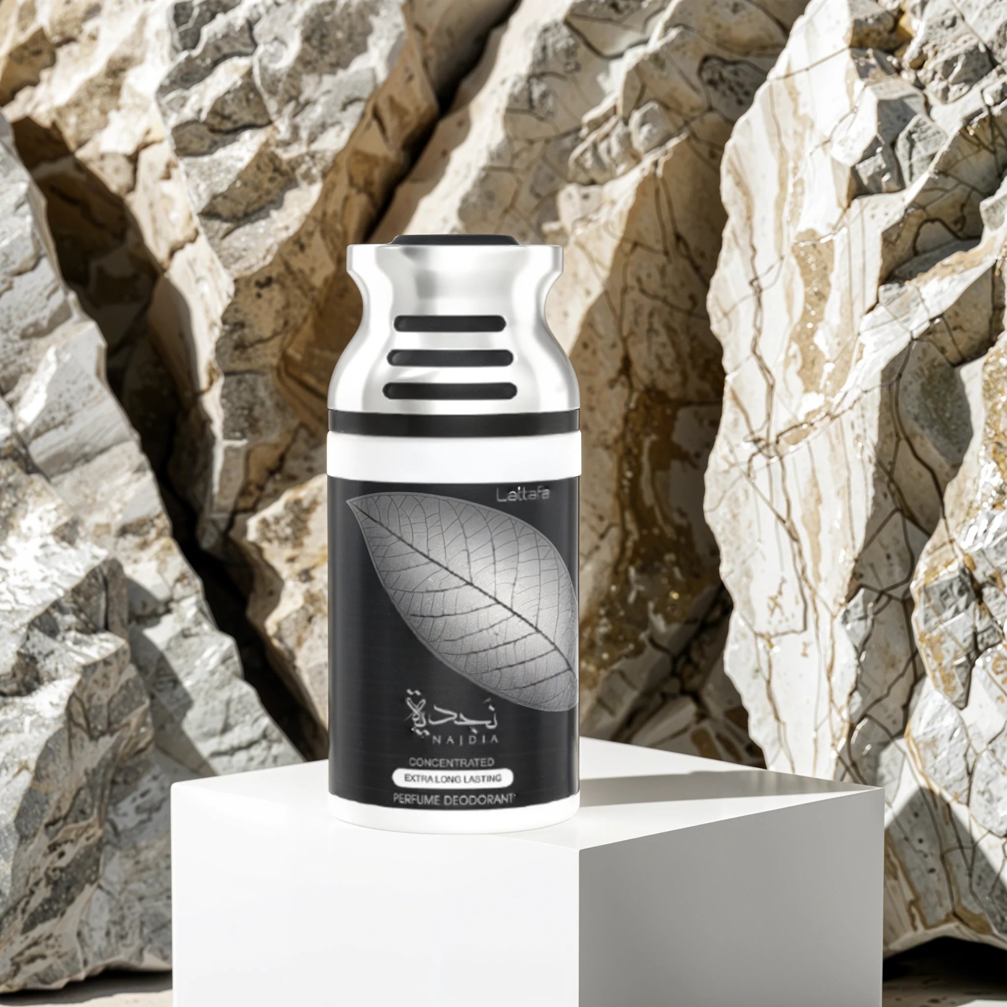Lattafa Najdia Deo Perfumed Spray is a harmonious blend of luxury and warmth, drawing inspiration from renowned fragrances like Rasasi Hawas and Invictus. With its unique composition, this scent captures the essence of Arabic perfumery, offering a captivating experience for the senses.
