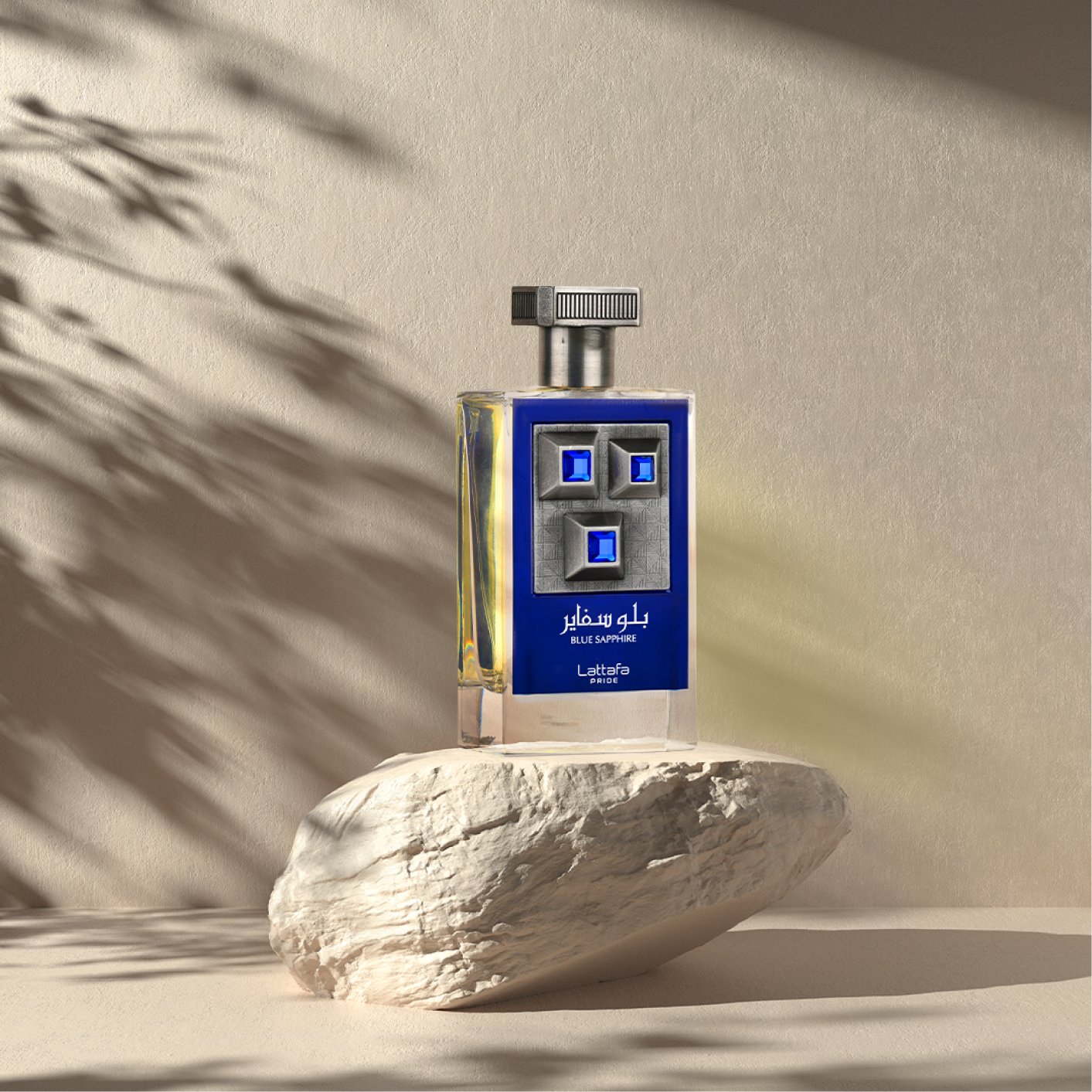Experience elegance with Lattafa Pride Blue Sapphire EDP: a luxury scent blending marine notes and Arabic fragrances, crafted in Dubai.
