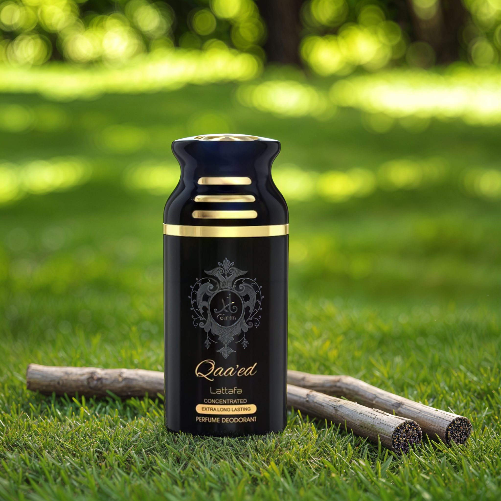 Elevate your style with Lattafa Qaa'Ed Deo: a long-lasting, oud-inspired fragrance for all seasons. More than deodorant—it's elegance.