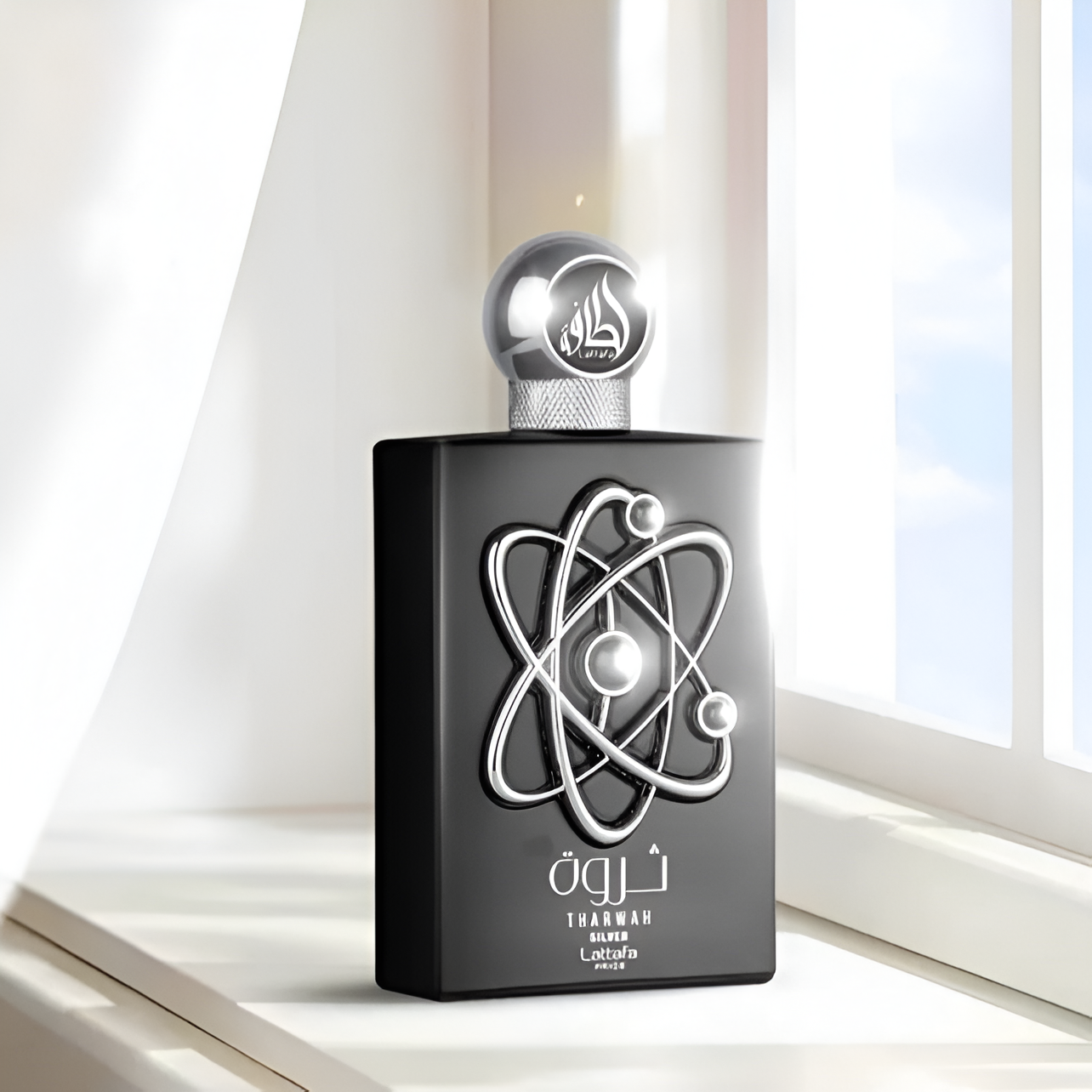 Lattafa Tharwah Silver EDP: A 2022 woody aquatic scent with mint, bergamot, and musk, perfect for the sophisticated modern man.