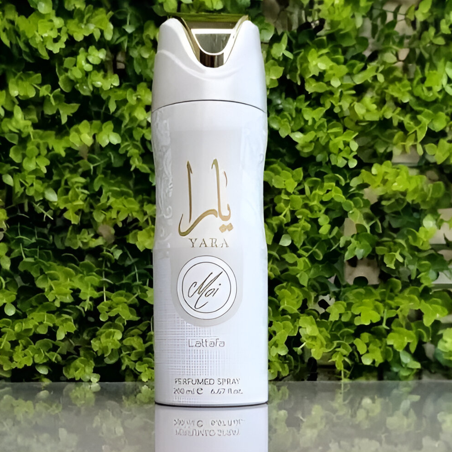 Lattafa Yara Moi Deo Perfumed Spray has a bright and exciting floral-fruity scent with enchanting jasmine, sweet peach, and warm amber, making it perfect for daily wear or special occasions.