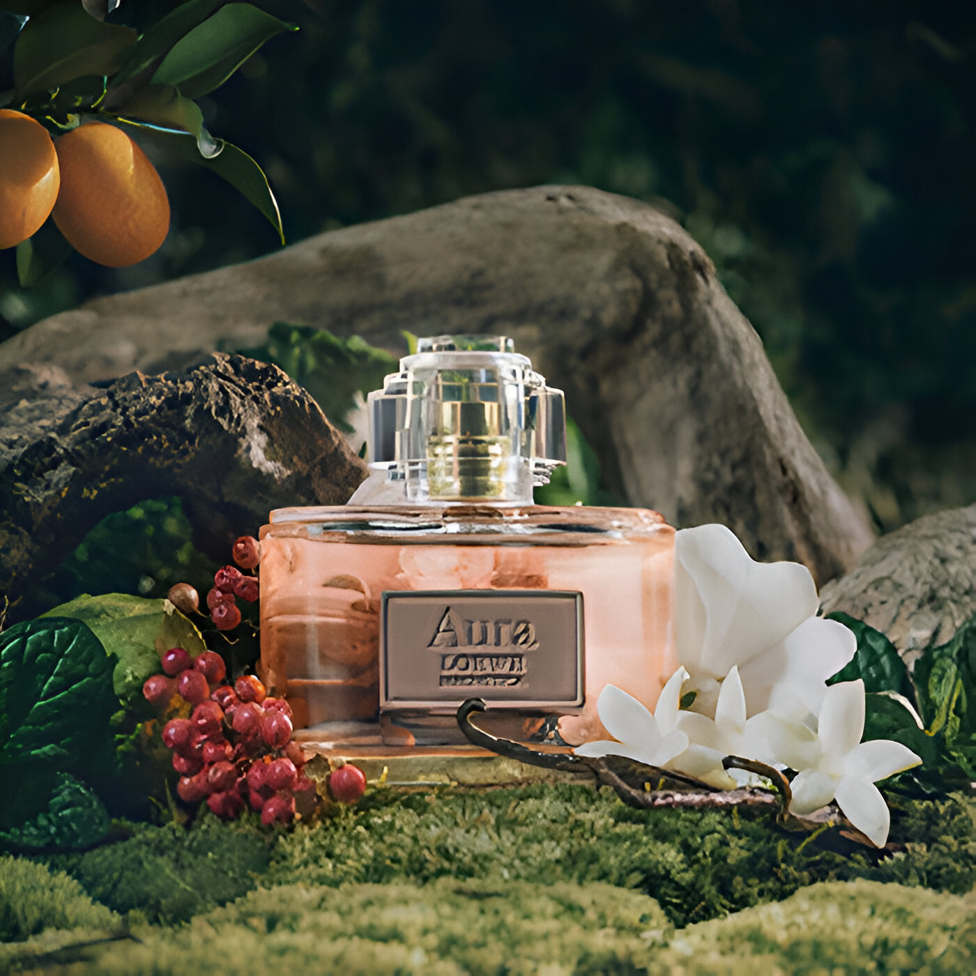 - Floral, woody fragrance notes