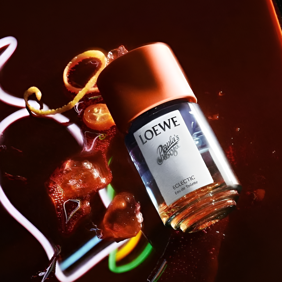 Loewe Paula's Ibiza Eclectic EDT smells like a lively blend of fresh orange flower and mandarin, combined with warm woody and sweet gourmand notes, capturing the joyful essence of sun-soaked summer days and vibrant nights in Ibiza.