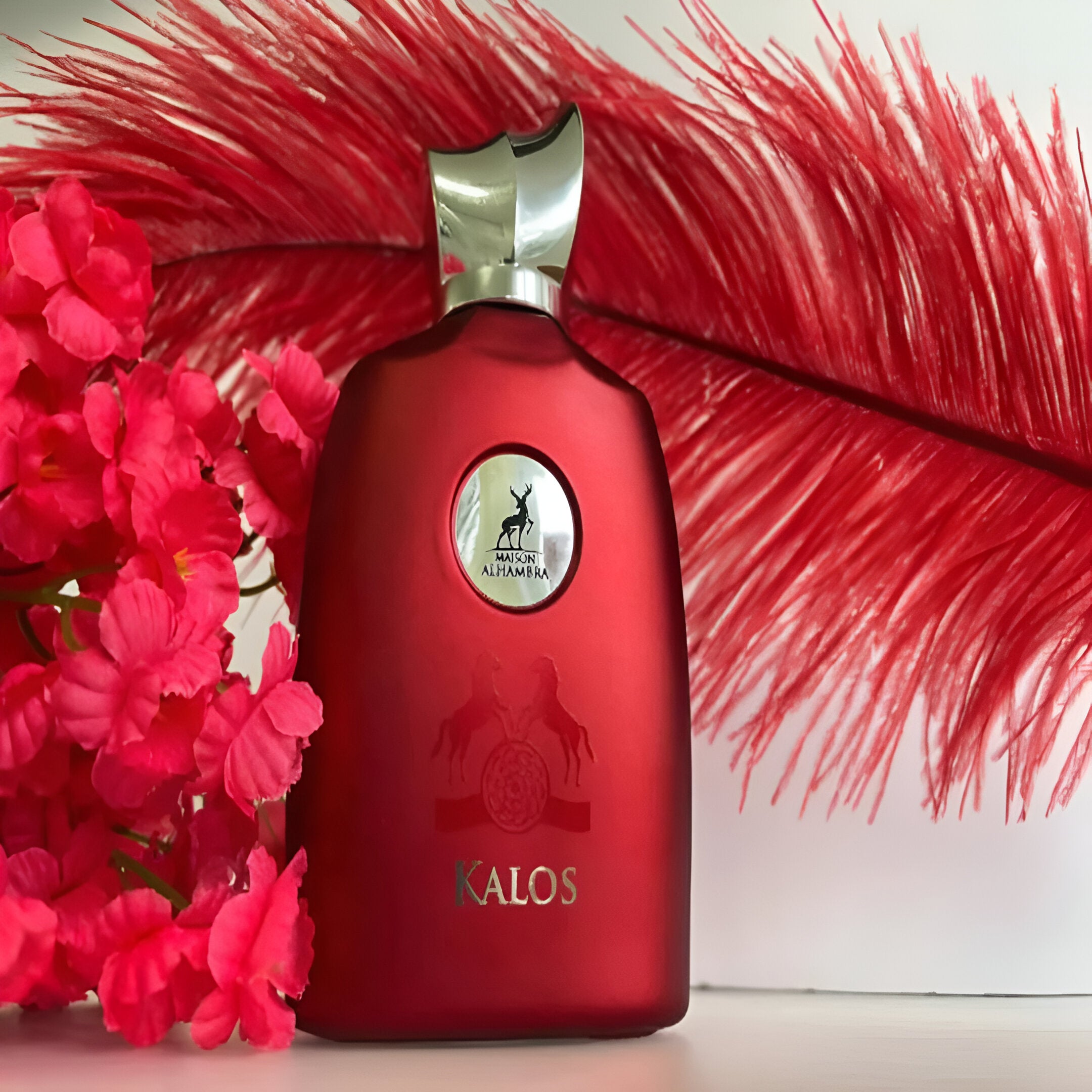 Maison Alhambra Kalos EDP smells like a sophisticated blend of vibrant citrus, warm spices, floral elegance, and deep woody notes, capturing both strength and grace.