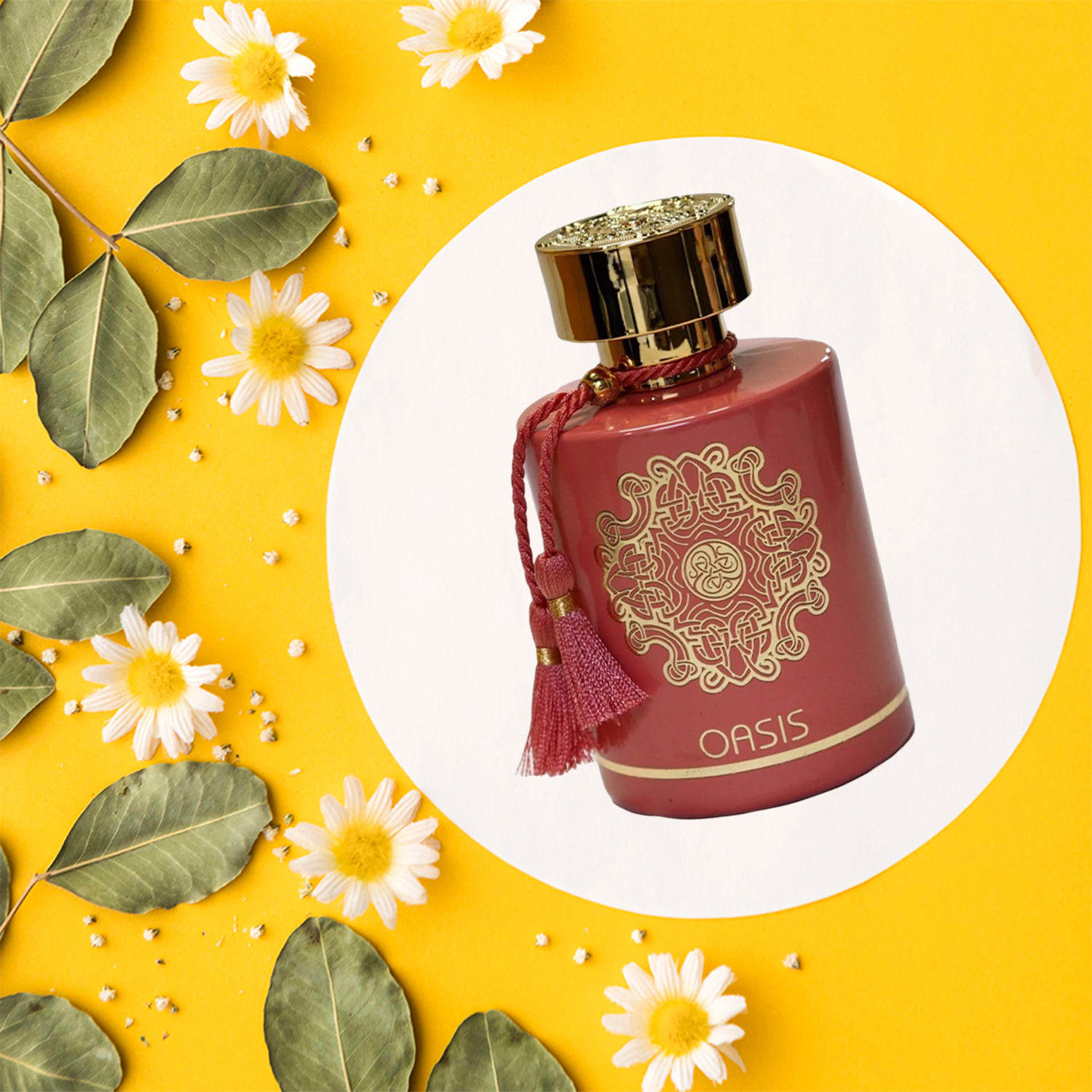 Maison Alhambra Oasis EDP smells refreshing and uplifting, featuring a blend of fruity, floral, and woody notes that create a vibrant and soothing aroma reminiscent of a serene oasis.