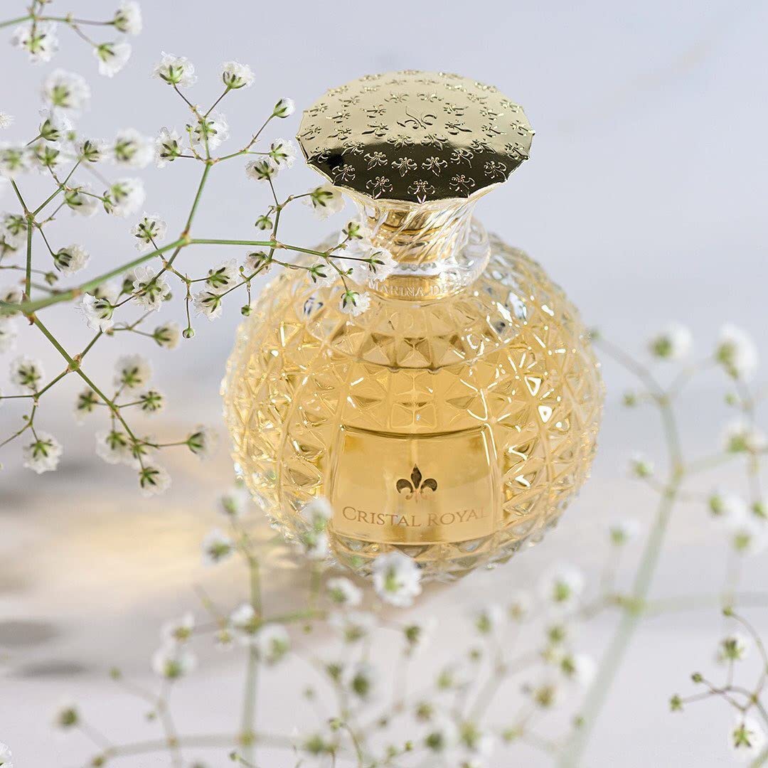 Marina De Bourbon Cristal Royal EDP has a regal scent with notes of delicate Jasmine, warm Vanilla, and rich Amber.