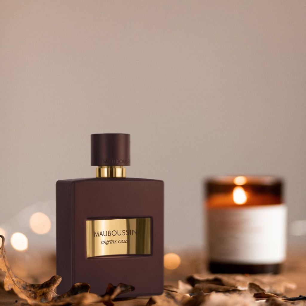 Mauboussin Cristal Oud EDP smells like a luxurious blend of rare oud wood, warm spices, and rich woods, creating a captivating and exotic scent that transports you to distant lands.