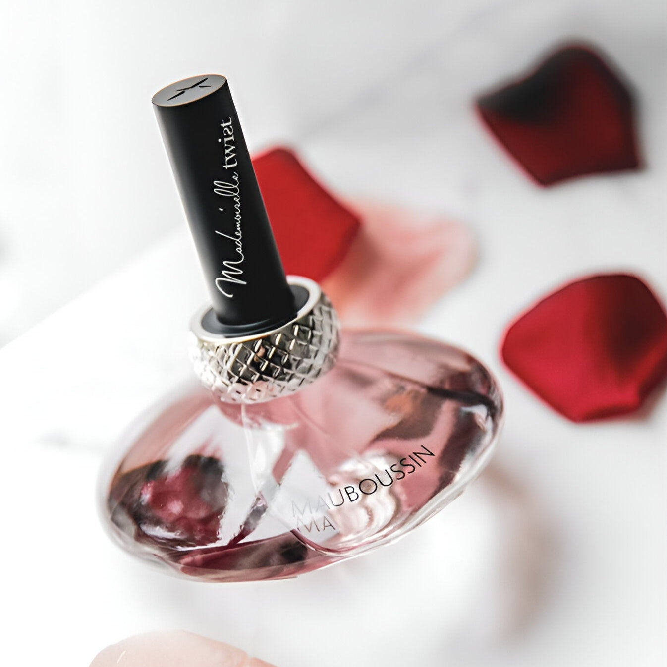 Mauboussin Mademoiselle Twist EDP smells like a joyful blend of sweet, delightful treats and captivating flowers, capturing the essence of movement and the exuberance of life.