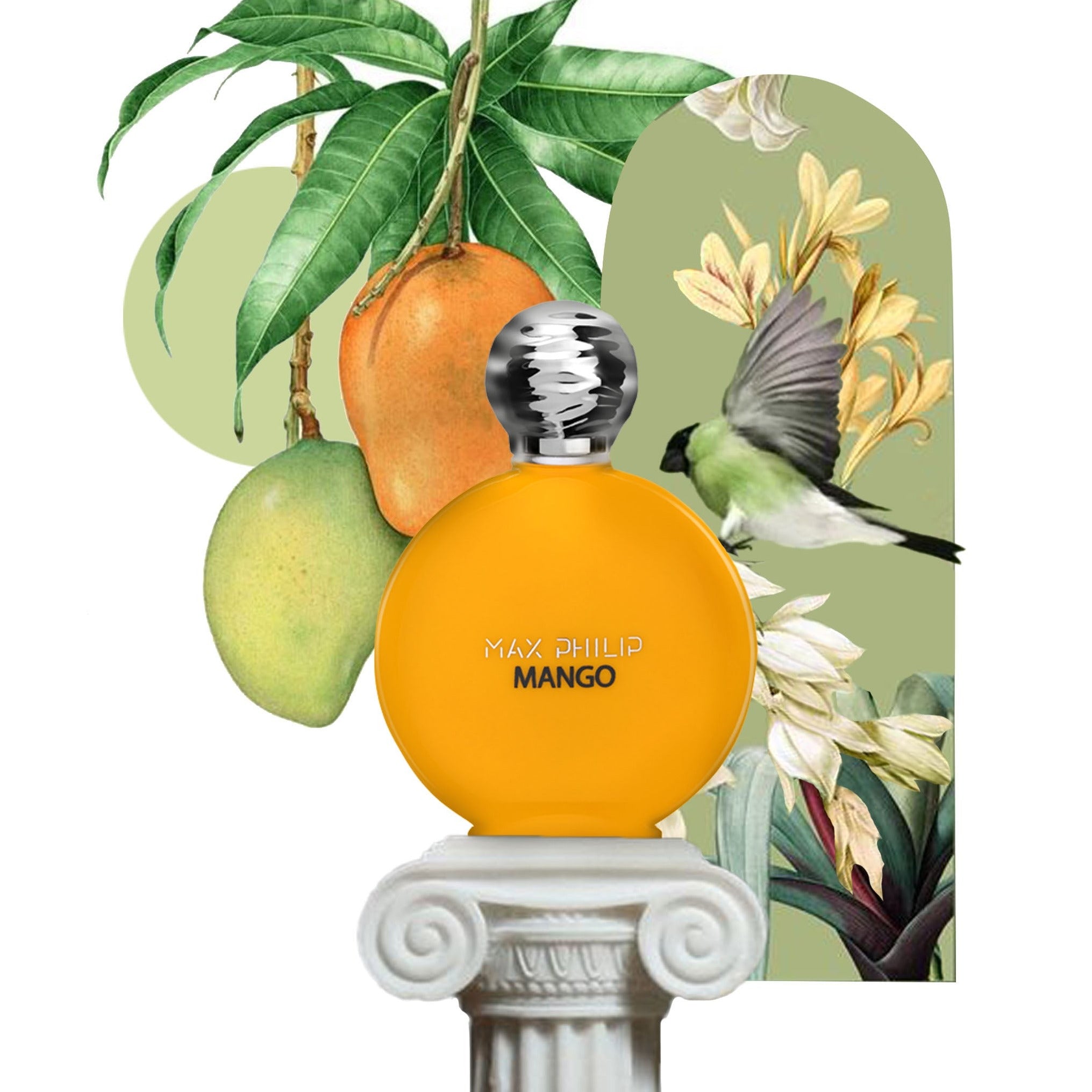 Max Philip Mango EDP offers a luxuriously fruity and woody aroma, energizing yet soothing, with a sophisticated blend culminating in warm tonka bean and birch notes.