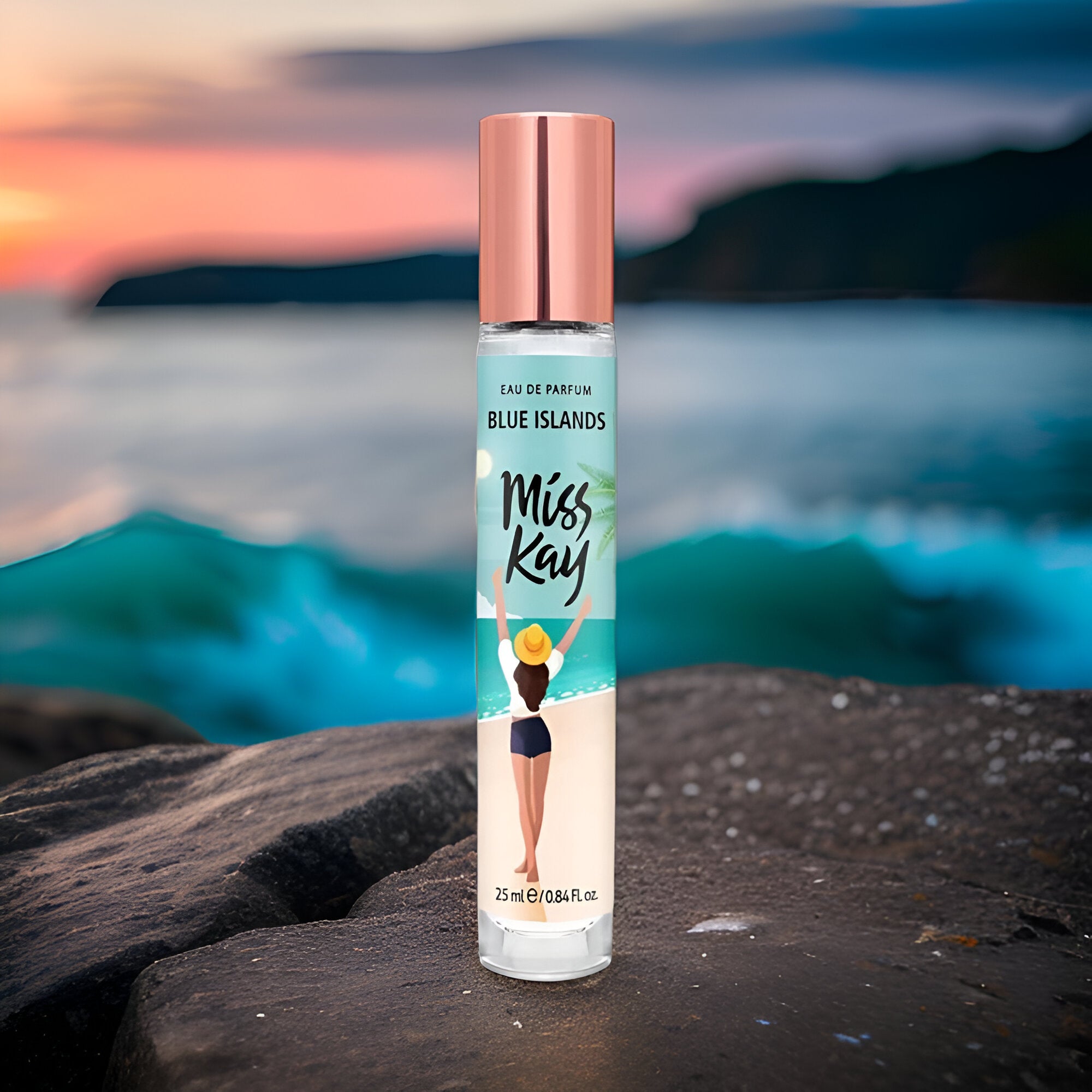 Let Miss Kay Blue Islands EDP transport you to sun-kissed shores and vibrant landscapes. It's the ideal scent for those seeking a refreshing escape and an invigorating twist to their day.