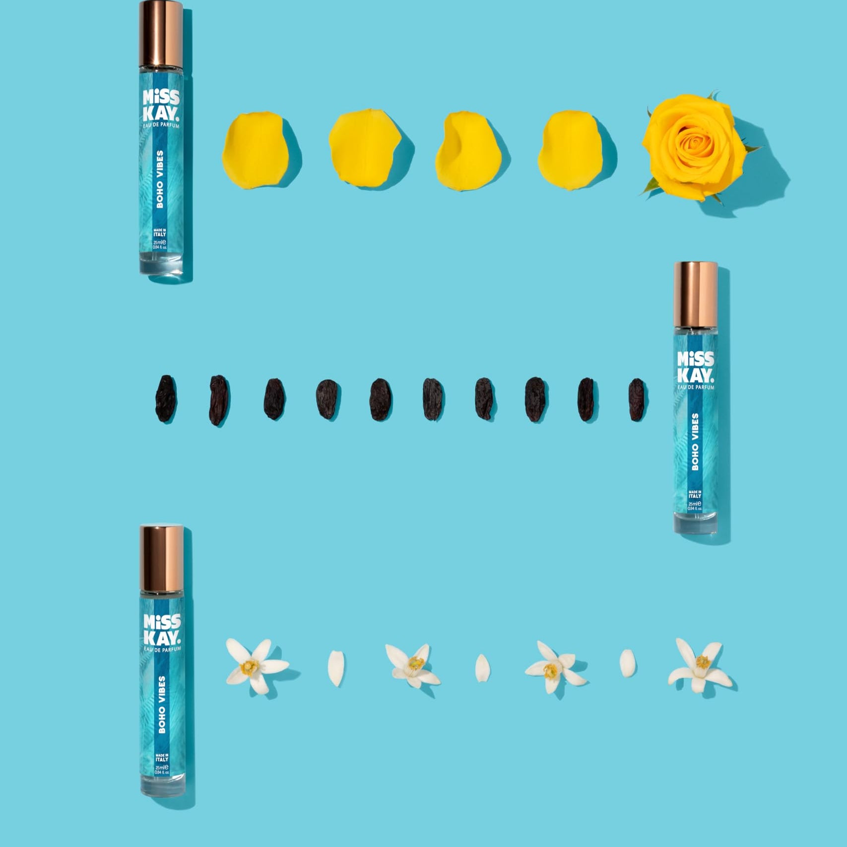 Miss Kay Boho Vibes EDP is a vibrant celebration of free spirit and inspiration. Immerse yourself in the warm embrace of this uniquely crafted fragrance.