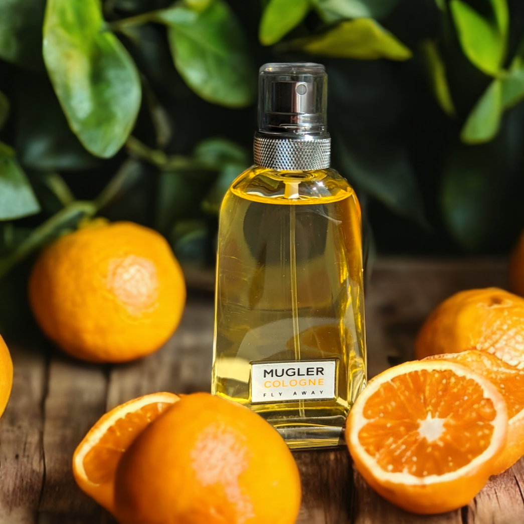 Mugler Cologne Fly Away EDT smells like a mix of zesty yellow grapefruit and aromatic hemp with a mysterious "C" note twist.