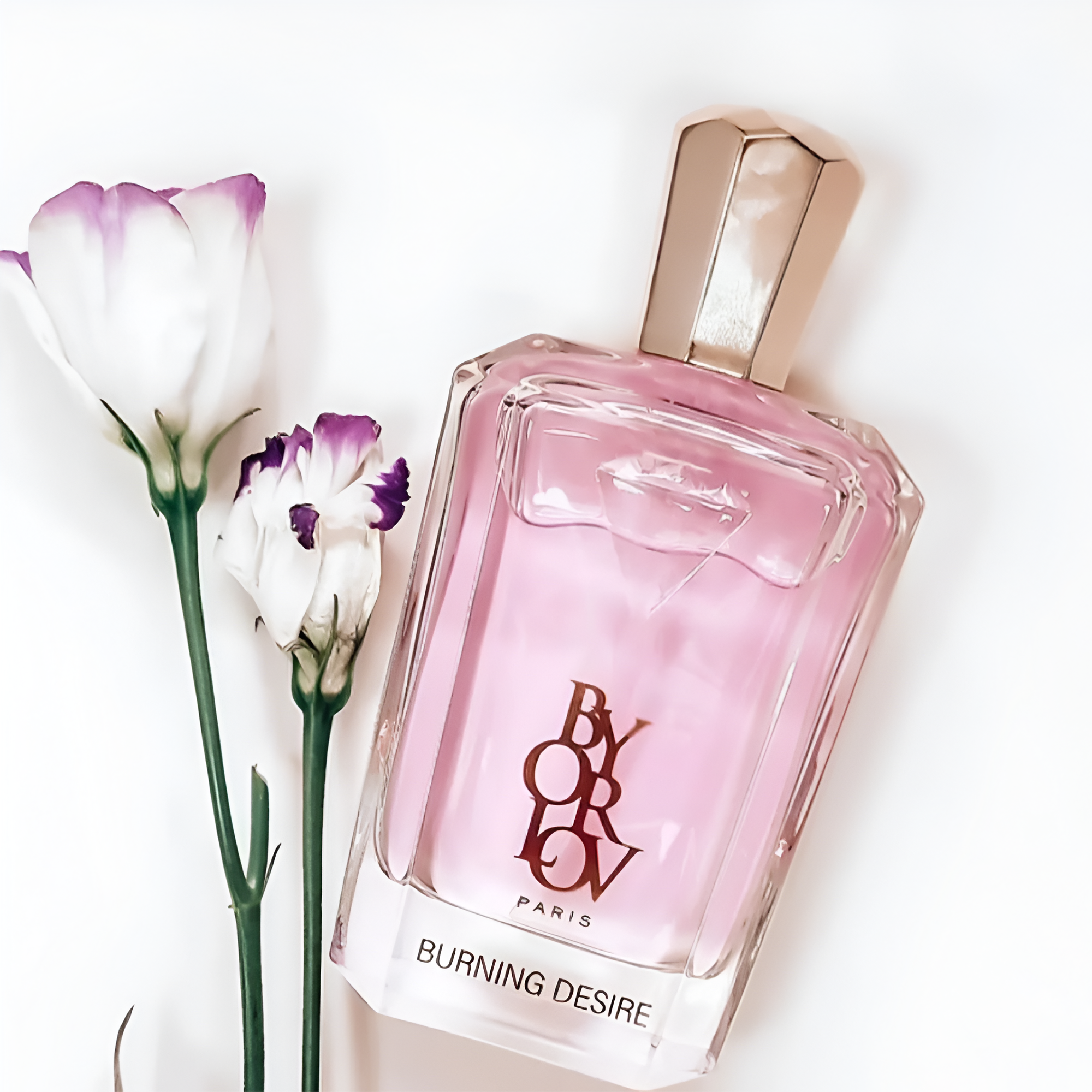 Orlov Paris Burning Desire EDP smells like a captivating blend of lush French rose intertwined with sensual spices and subtle musky tones.