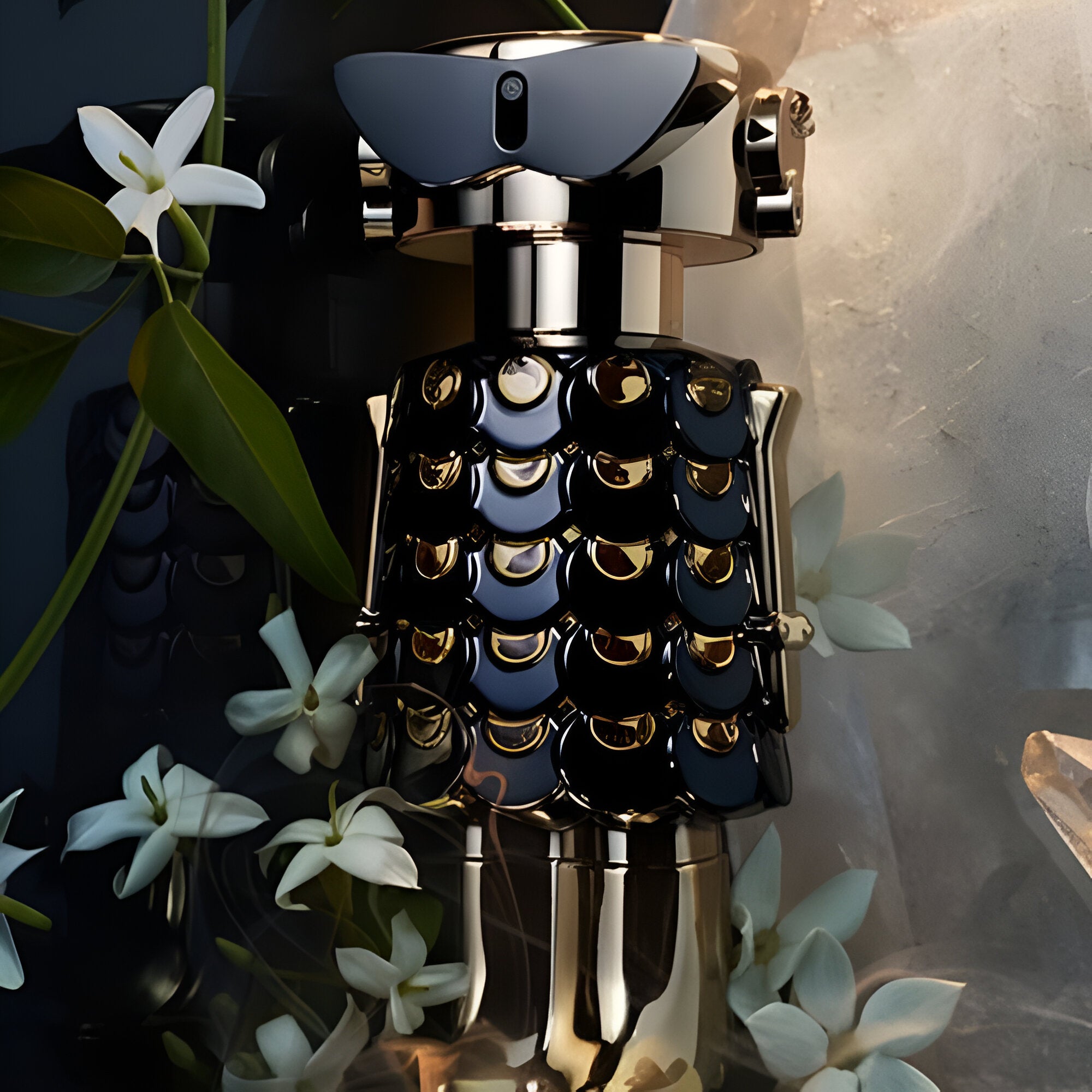 Paco Rabanne Fame Parfum smells like a luxurious blend of sweet jasmine, rich caramel, and warm cedarwood, creating an unforgettable and alluring scent that celebrates femininity.
