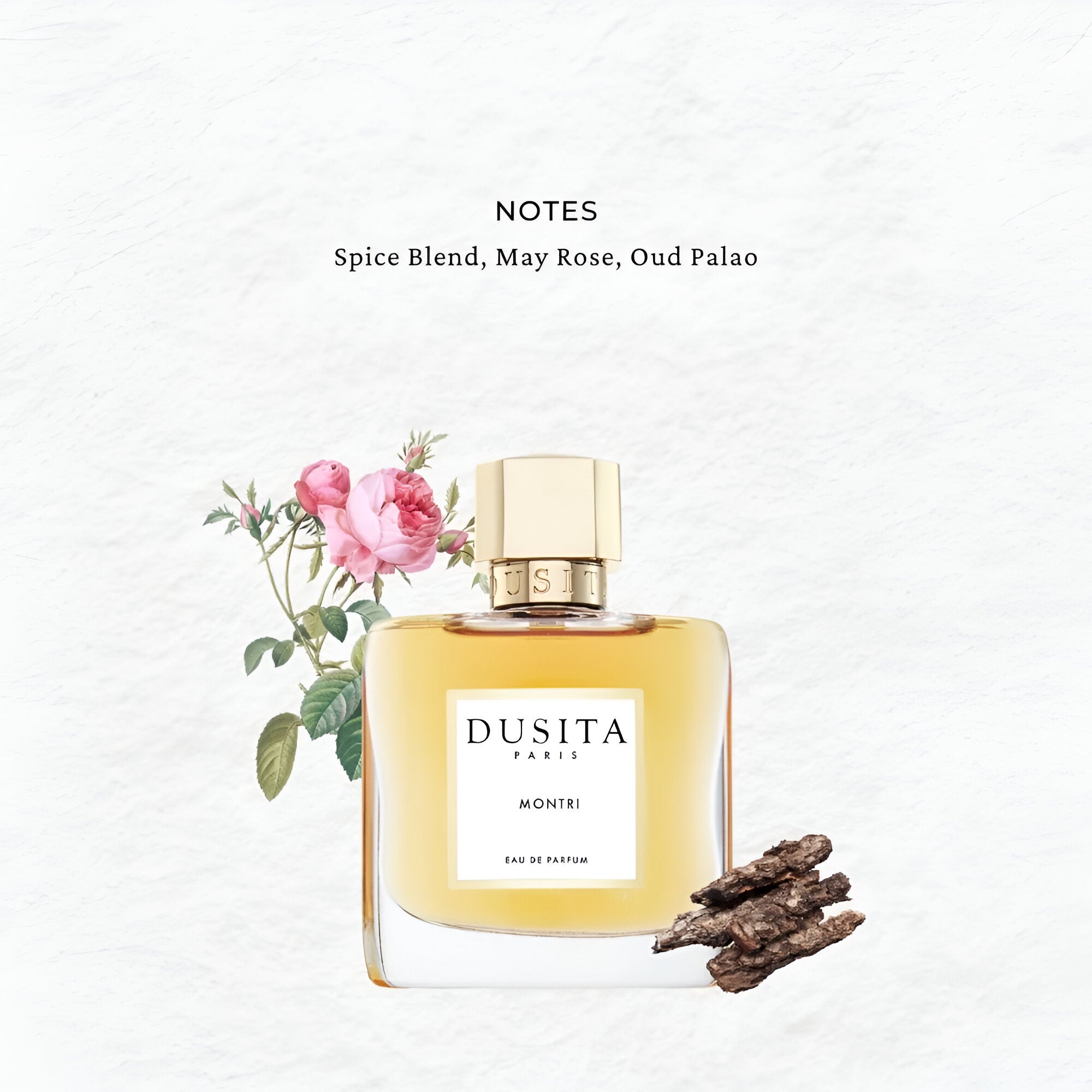Parfums Dusita Montri EDP smells like a serene, sophisticated blend of spicy and woody notes with hints of petitgrain and dried fruits.