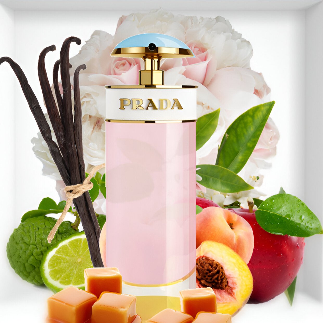 Prada Candy Sugar Pop EDP smells like sweet vanilla, rich caramel, and soft white musk.