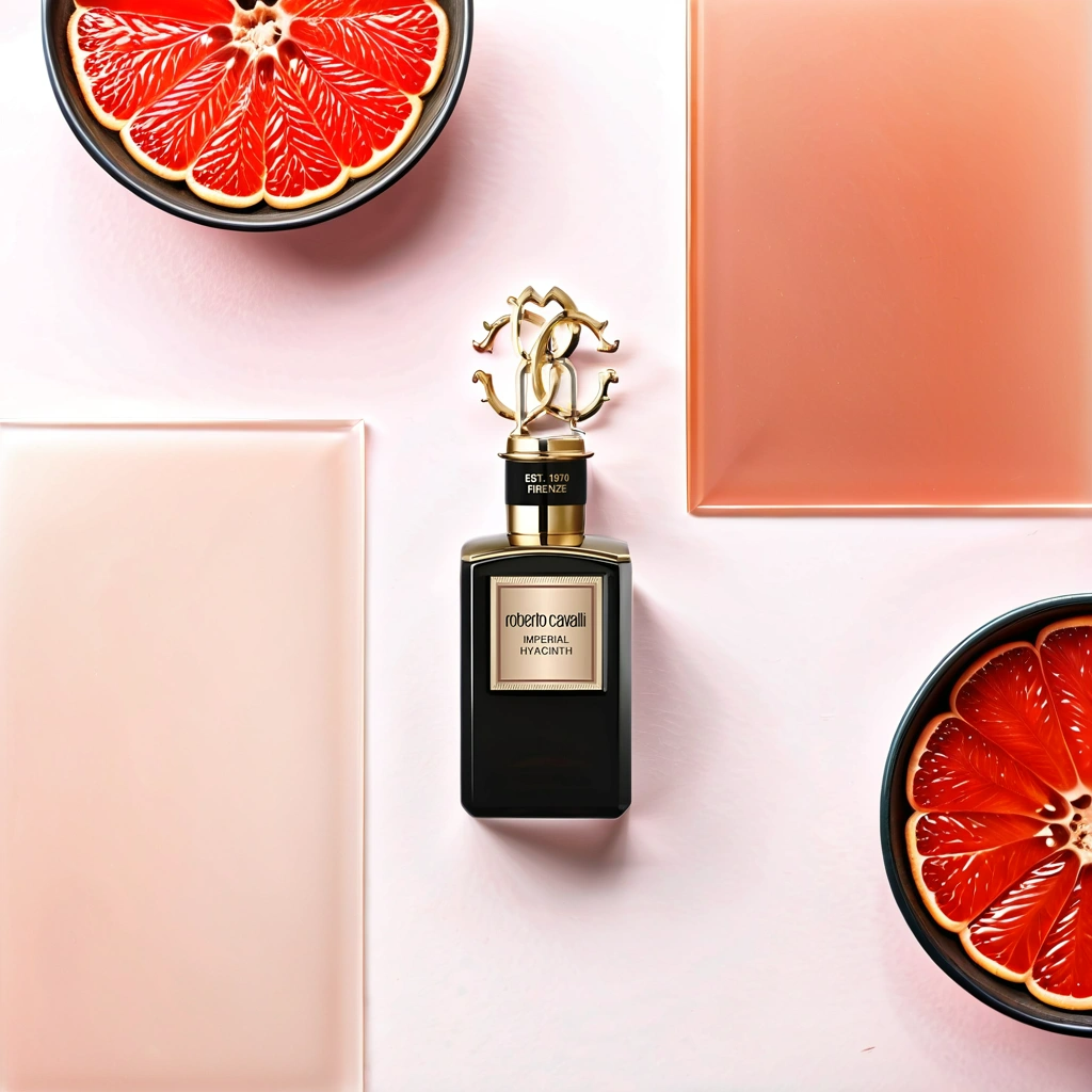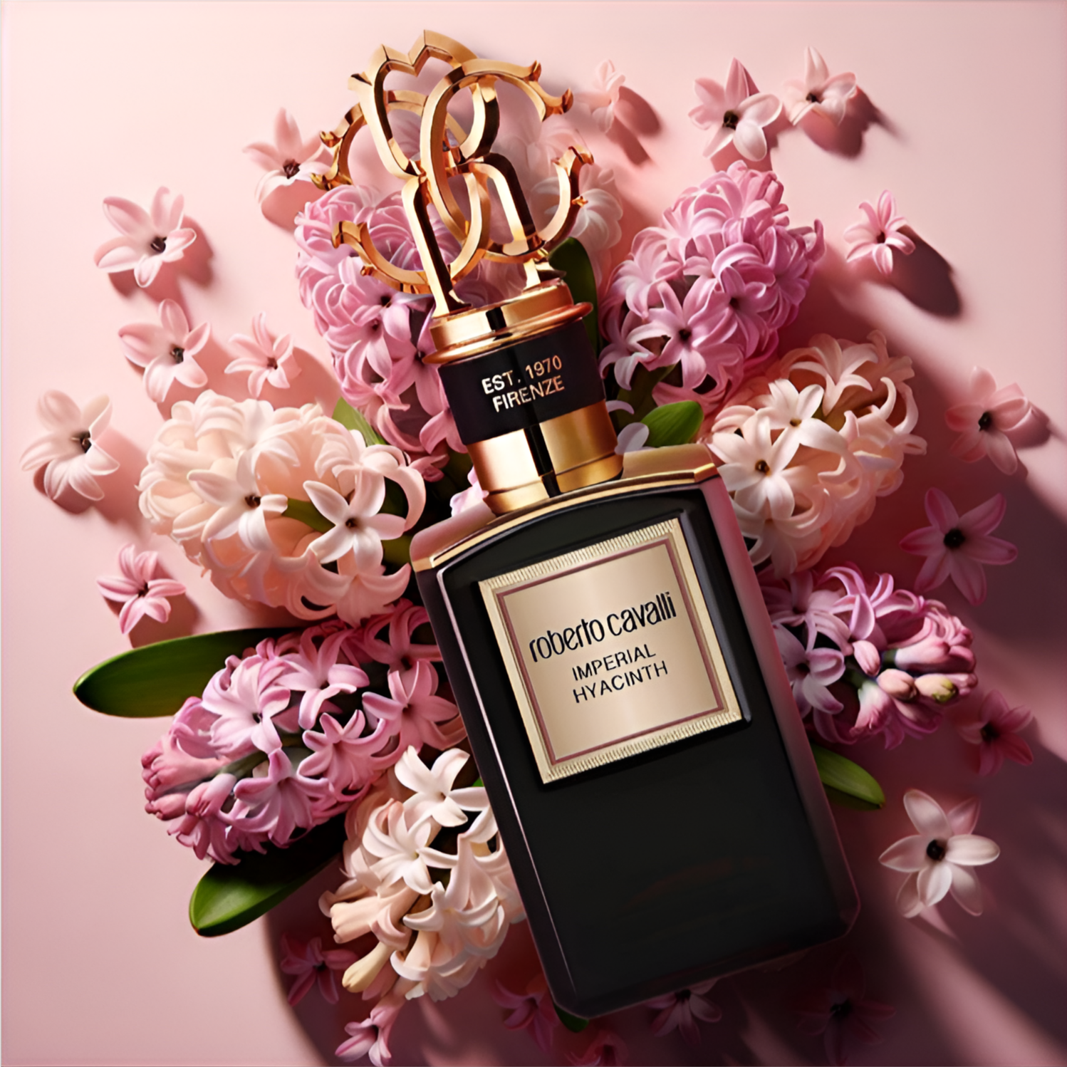 Roberto Cavalli Imperial Hyacinth EDP smells like an elegant blend of mandarin, orange blossom, and amber with the enchanting essence of winter hyacinths.