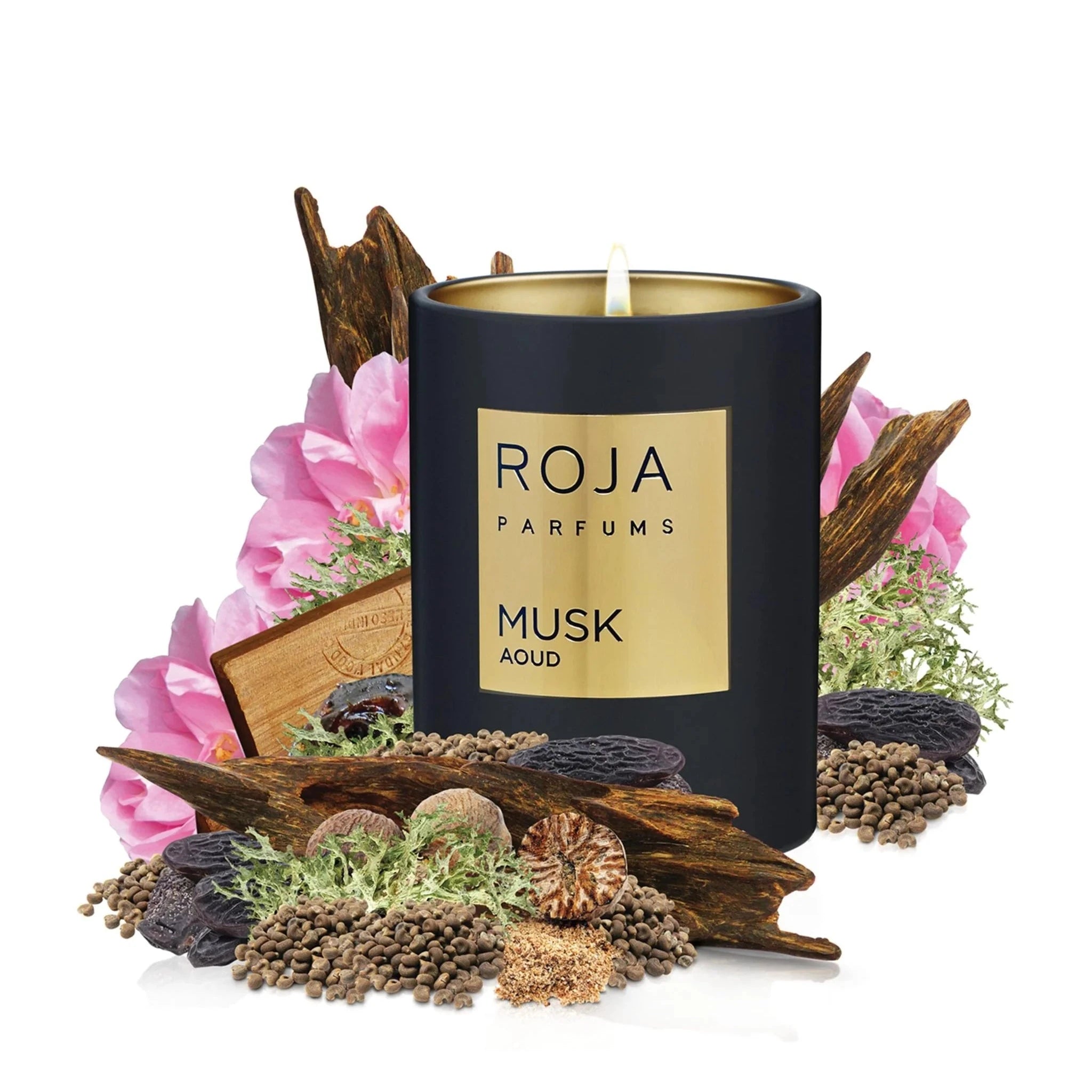 The Roja Parfums Musk Aoud Candle combines luxurious fragrance with exquisite craftsmanship, creating an inviting atmosphere in any space.