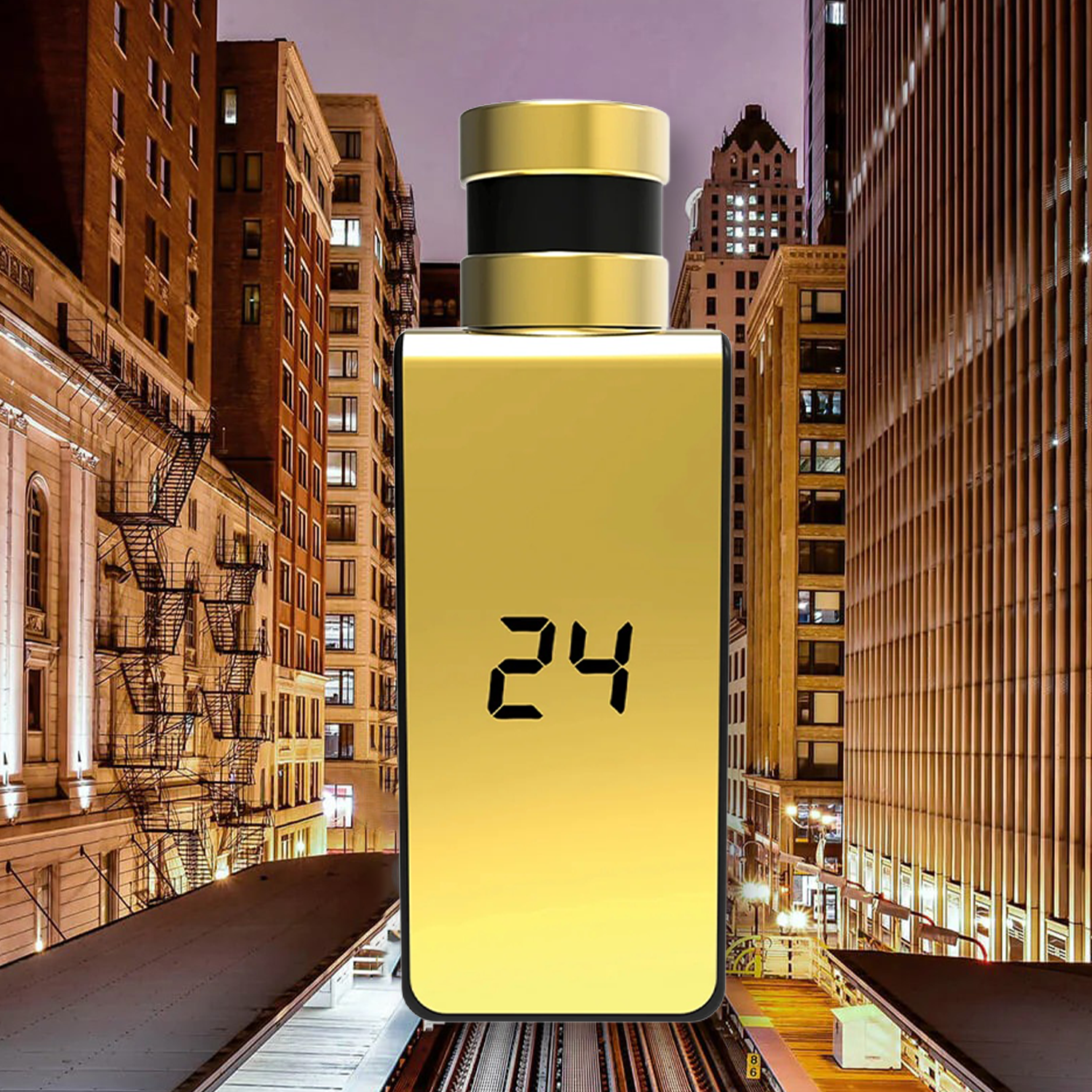 Scentstory 24 Elixir Gold EDP smells like a warm blend of sweet woods and rich agarwood, highlighted by invigorating cardamom and pine, perfect for those who embody confidence and adventure.