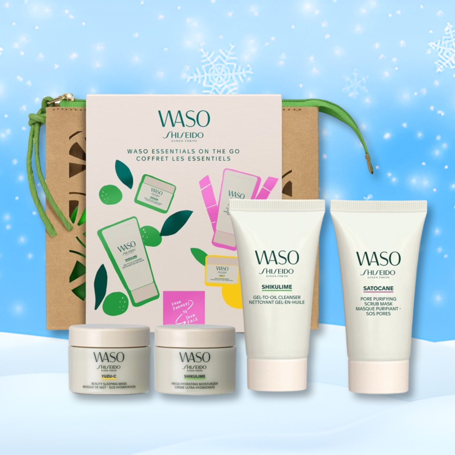 Enhance your skincare with Shiseido Waso Essentials On The Go Set, perfect for travel and daily use, featuring natural ingredients for radiant skin.