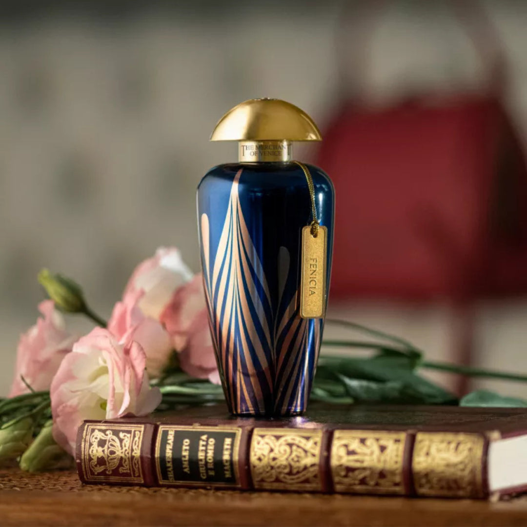 The Merchant Of Venice Fenicia EDP exudes a luxurious blend of citrusy lemon and elemi with a warm, opulent base of vanilla, myrrh, and sandalwood, reminiscent of Renaissance Venice's splendor.